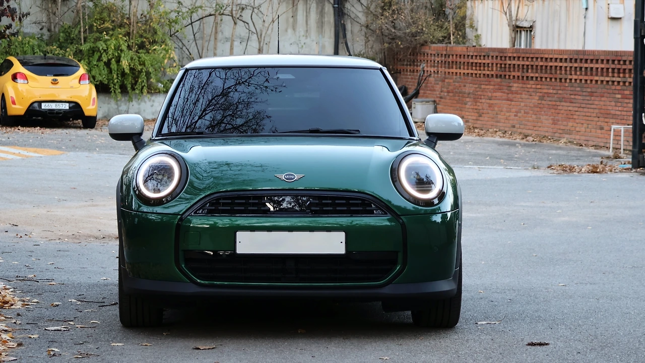 시승 차량은 미니 쿠퍼 C 라인업 중에서도 '클래식' 트림이다. 클래식 하위 트림으로 '에센셜' 트림이 따로 존재하며, 외관상으로는 휠과 루프 색상 등 소소한 차이가 있다. 디자인 자체는 이전 세대 미니 해치백과 유사하다. 특히 클램셸 후드와 헤드램프 형상이 동일한데, 큰 차이이라면 주간주행등 그래픽을 총 3가지로 변경하여 설정할 수 있다는 점이다. 라디에이터 그릴은 프레임이 보다 각지게 다듬어졌고, 범퍼의 경우 양 끝단 에어 인테이크가 사라진다. 모든 가니시 색상이 검은색으로 통일되면서 생각보다 무게감 있고 진중한 분위기가 느껴졌다.