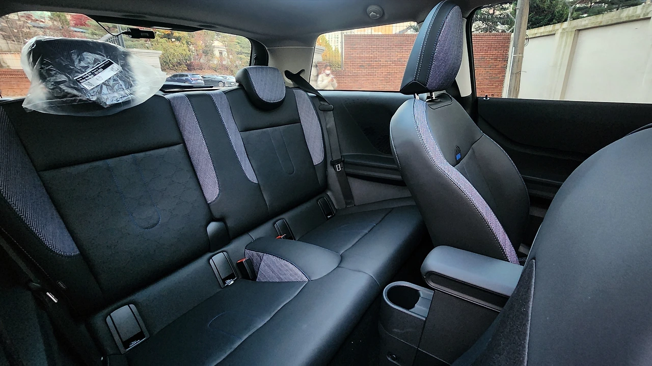 이전 세대와 비교하면 센터패시아가 정말 간소화된다. 모든 편의 기능이 스크린에 통합된 점도 있지만, 시동 버튼과 변속기가 레버 타입으로 변경되었기 때문이기도 하다. 잔여 공간은 스마트폰 무선 충전 패드를 마련하고, 중앙 수납공간을 확장하며 개방감도 개선했다. 클래식 트림까지는 신형 스포츠 스티어링 휠이 적용되는데 하단 스포크를 스트랩으로 마감한 점이 특징이다. 니티드 인테리어 트림, 대시보드를 감싸는 앰비언트 라이트까지 참신함과 아기자기함을 지녔다. 참고로 시트는 수동식, 스티어링 휠과 함께 열선은 내장되어 있다.
