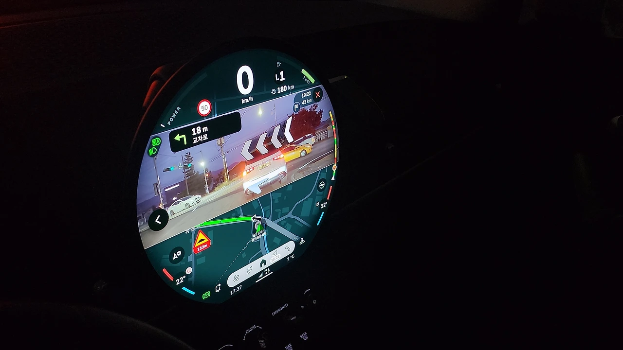 탑재되는 주행 보조 장비는 크루즈 컨트롤과 차선이탈 방지 장치, 일부 경보 시스템 정도다. 참고로 방향지시등은 전자식이 아닌 기계식으로 통합되었다. ADAS가 없다는 점은 막히는 길에서 불편하긴 하다만, 미니는 본성적으로 편의보다 재미를 표현하니 일반 주행에선 괜찮다. 추가로 오토홀드는 적용되어 있고, 브레이크를 꾹 밟고 있으면 해제가 가능했다. 또한 T맵과 협력한 한국형 내비게이션의 사용성이 편리했다. 클래식 트림도 전방 카메라가 적용되어 AS 길 안내 기능을 지원하고, 파킹 어시스트는 자동 주차 및 후진 보조 기능까지 제공한다.