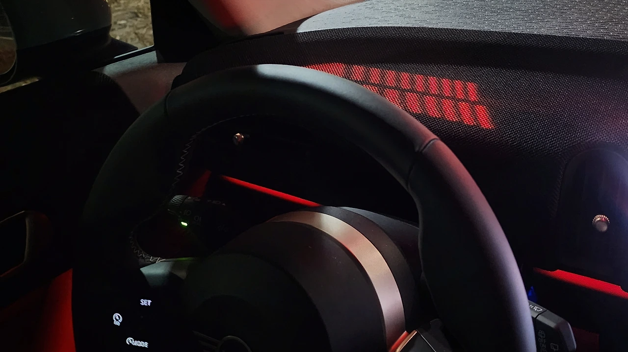 스티어링 휠도 묵직하다. 약간의 언더스티어 감각이 있으나 차체가 작아 자연스럽다. 아무렴 재미있는 차량이다. 드라이빙 모드 중 '고-카트'를 활성화하면 엔진 반응과 변속기의 체결감이 예상보다 확실히 달라진다. 디스플레이에는 RPM 게이지가 표기되고, 달라진 앰비언트 라이트의 패턴이 마치 체커기를 연상시킨다. 엑셀 응답성이 한층 예민해지고 DCT는 적극적으로 RPM을 높여 사용했다. 잔잔한 편이지만 부밍 사운드도 자극을 더하고, 재빠른 가속에도 섀시는 탄탄한 주행감각을 실현해 준다. 딱 부담 없이 재미를 느끼기 좋은 출력이다.