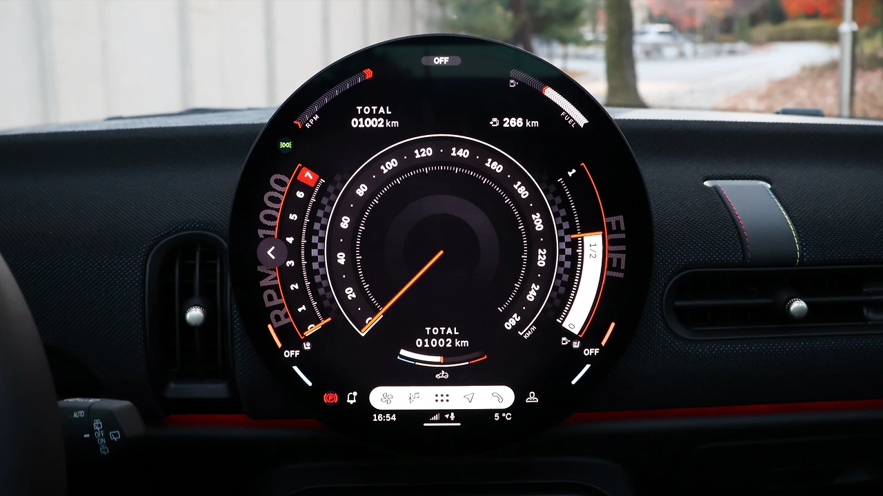 간소화를 이룬 실내라도 서클 타입 디스플레이 하나로 미니의 아이덴티티는 다분하다. 그리고 엔진 시동을 거는 순간 다시 한번 더 브랜드 고유의 필링을 느껴볼 수 있다. 마치 장난감 자동차의 태엽을 돌라는 감각으로 묵직하고 중후한 스타트 사운드가 들려온다. 이내 아이들링 상태에서는 조용해지지만 초반 RPM 전개에서 들려오는 중저음의 배기 사운드가 전형적이다. 토글 타입 변속기도 기존 핸드레버 타입보다 조작감은 단조로울지라도 편리한 건 사실이다. 주행 중 자주 사용해야 하는 비상등이나 볼륨, 디포그, 주행 모드 변경 버튼은 물리 방식이었다.