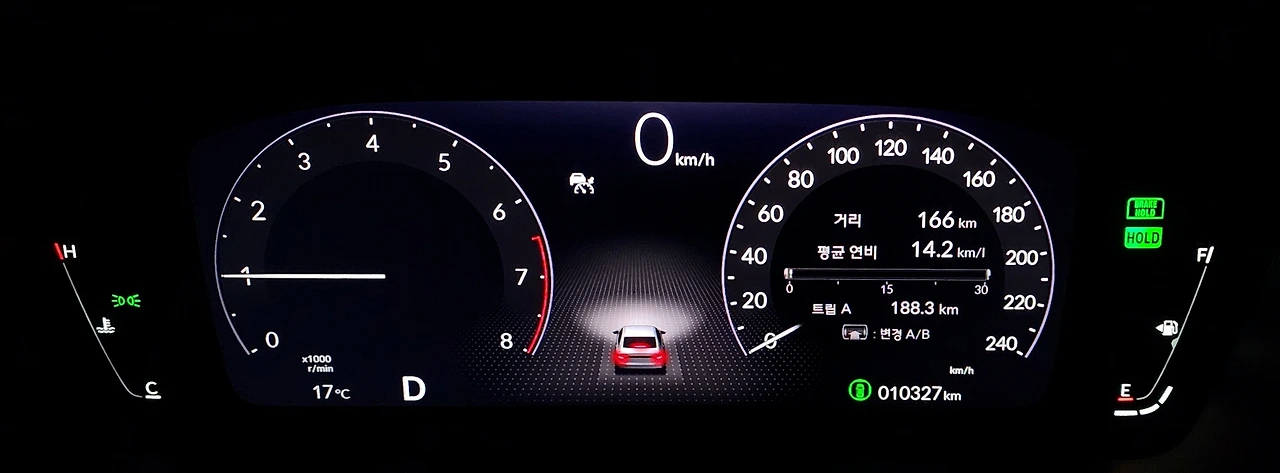 연비를 아예 신경 쓰지 않고 183Km의 시내 주행을 반복한 결과 트립 연비는 14.2Km/L로 계측되었다. 운전 습관으로 잦은 가감속에서도 1.5L 터보와 CVT 엔진은 부드러운 매칭과 탁월한 효율성을 구현해 낸다. 실제 복합 연비에 비해 도심 주행 연비가 크게 떨어지지 않고, 일반 승용차처럼 고속 주행 효율은 극대화되는 만큼 어코드 터보는 경제성까지 확보한 세단이라고 볼 수 있겠다. 각종 운전자 보조 기능을 결합한 '혼다 센싱'은 운전 편의를 더해주는데, 특히 국산처럼 '차로 유지 보조' 기능만 별도로 활성화하여 유지할 수 있다는 점이 편리하기도 했다.