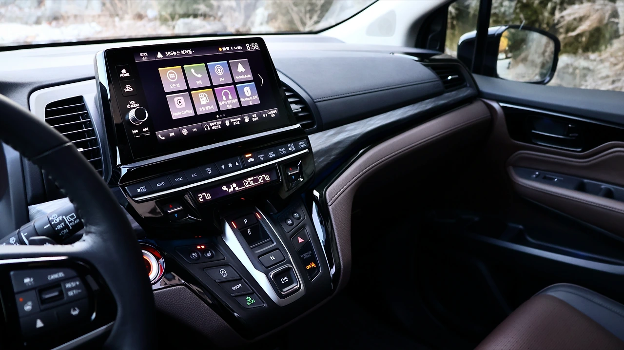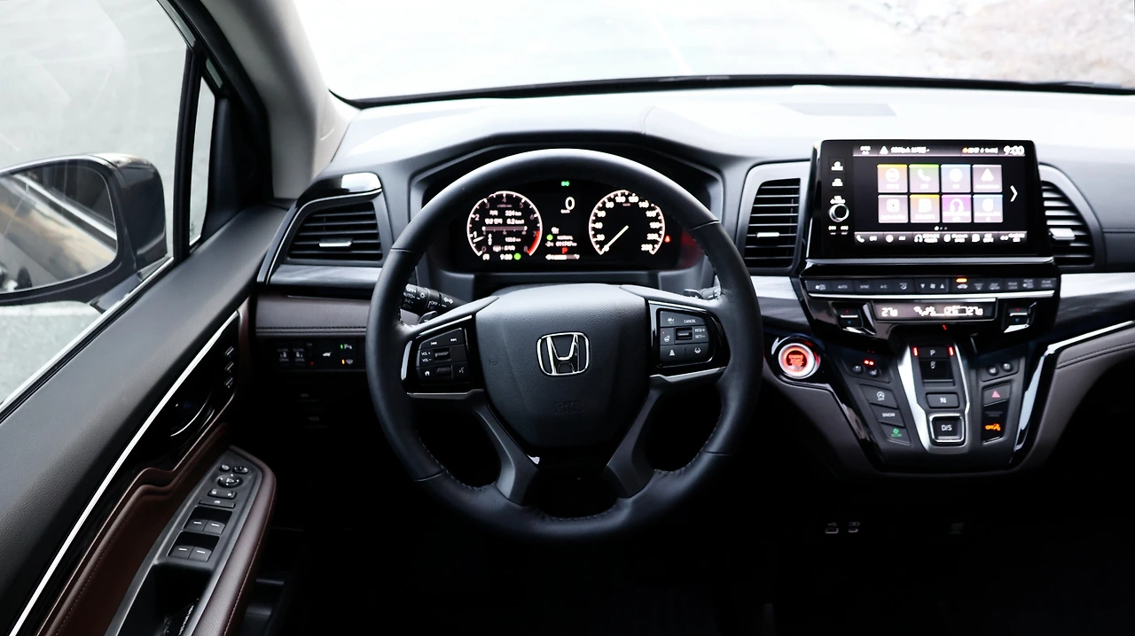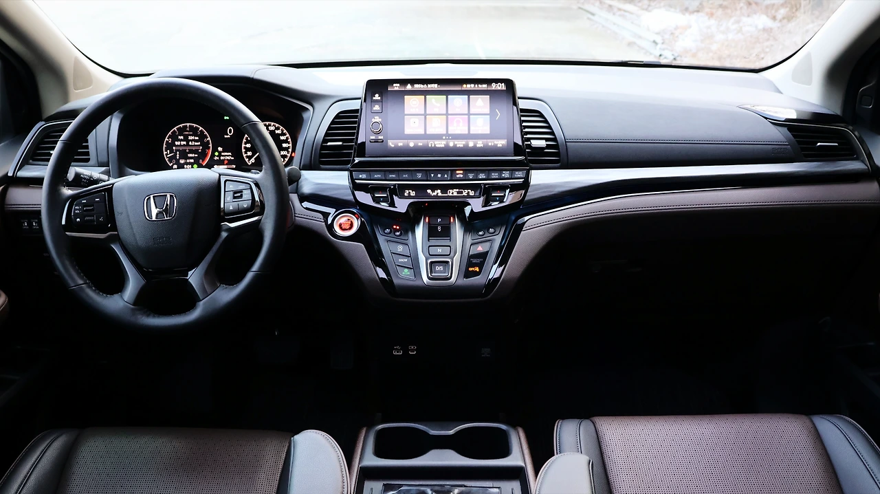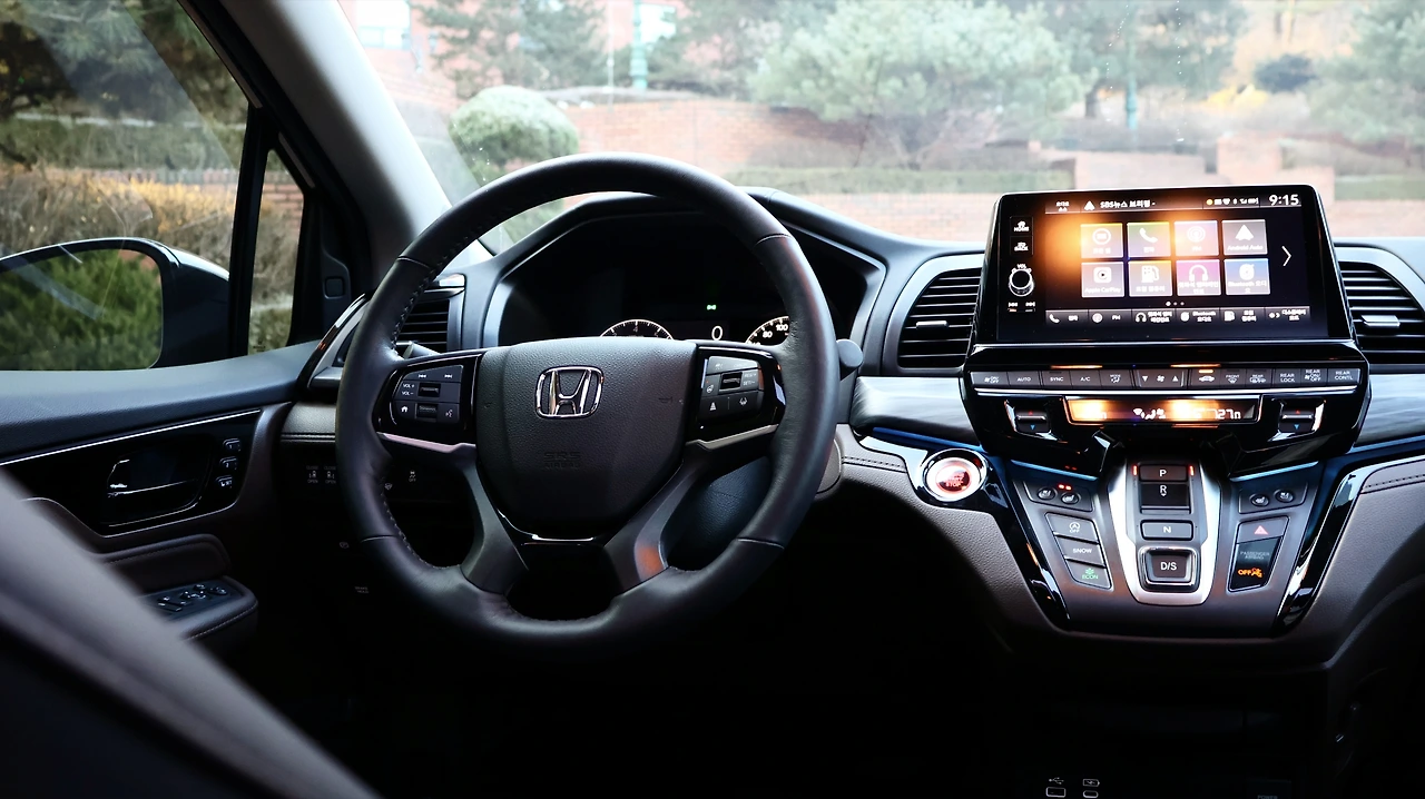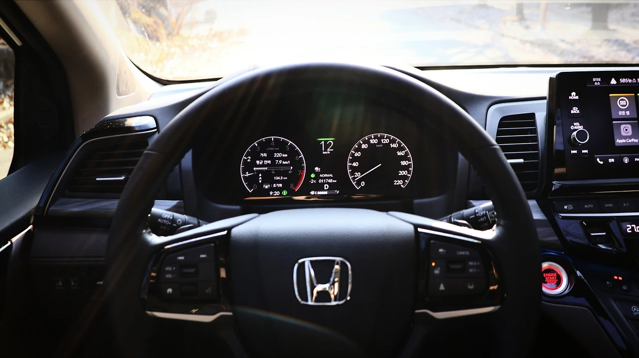 오딧세이의 경우 동급 미니밴에 비해서는 시트 포지션이 낮은 편이다. 프런트 마스크가 낮은 편이기도 하며, 실제 승용차와 같은 주행 감각을 의도하는 부분이다. 반면 전고 자체는 높다 보니, 이지 액세스 기능과 더불어 승하차가 상당히 편리했다. A필러는 캡 포워드 스타일로 길게 뻗어있고, 운전석 벨트라인도 낮게 배치되며 느껴지는 개방감이 탁월하다. 엔진 시동을 걸면 V6 가솔린 엔진의 파워풀한 반응이 느껴진다. 버튼식 변속기는 처음에는 적응이 필요했으나, 익숙해지면 편리한 조작감과 직관적인 사용감을 누리게 한다.