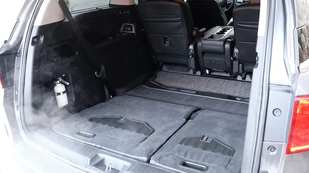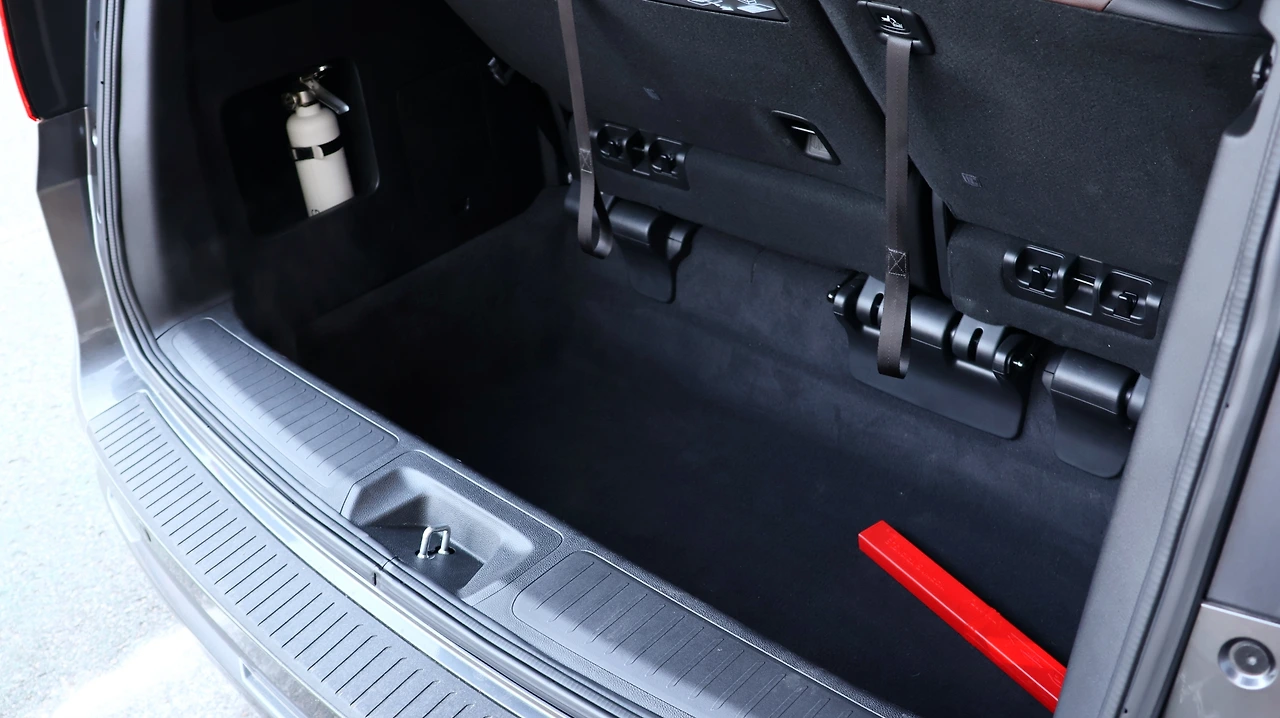 3열은 6:4 폴딩 시트가 탑재된다. 역시 고급스럽고 편안한 시트 디자인이 강점, 3열 시트의 경우 차체 하단부에 깔끔하게 수납되어 평소에는 광활한 트렁크 공간으로 변형할 수 있다. 2열과 3열은 모두 프라이버시 글래스가 적용되어 있고, 수동식 롤러 블라인드도 포함되어 쾌적함을 더해준다. 2열 우측 좌석에서는 후석 독립 공조기를 조작할 수 있다. 무엇보다 12.8인치 리어 엔터테인먼트 시스템은 장거리 여정에서 뒷좌석 탑승객의 지루함을 덜어준다. 스마트폰 연동을 통해 다양한 스트리밍 서비스에 접근 가능하여 활용도가 탁월했다.