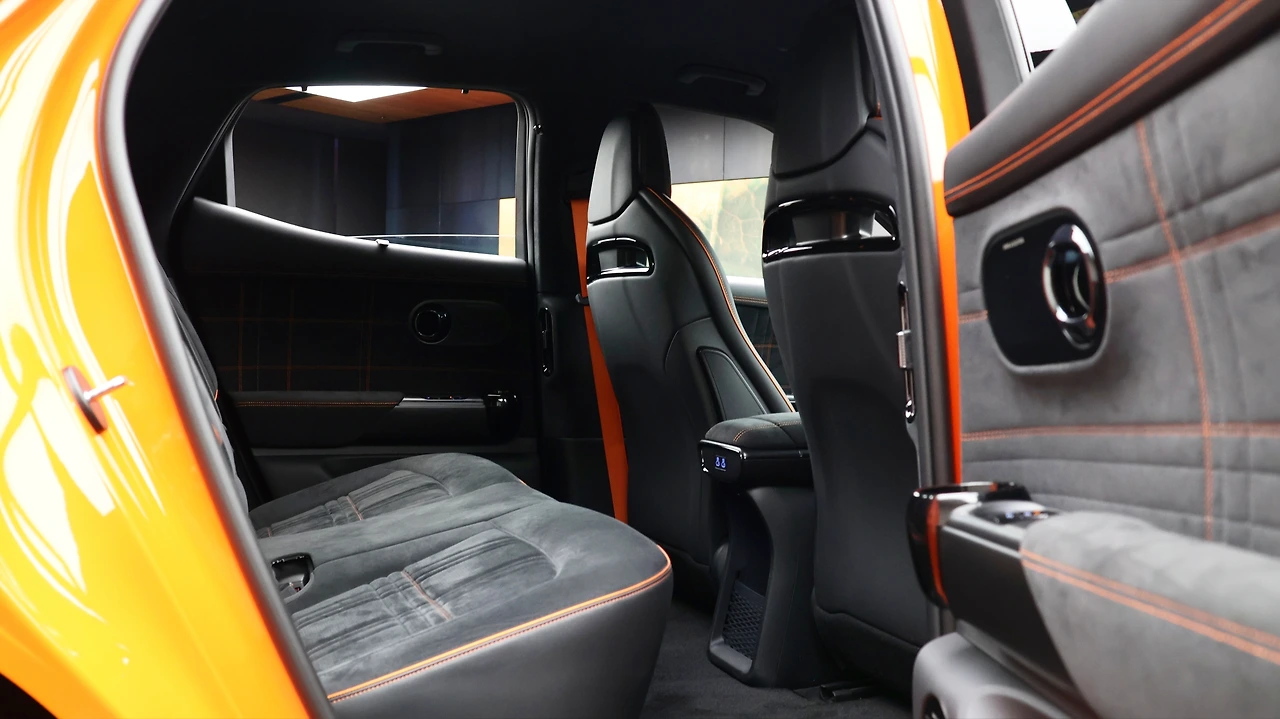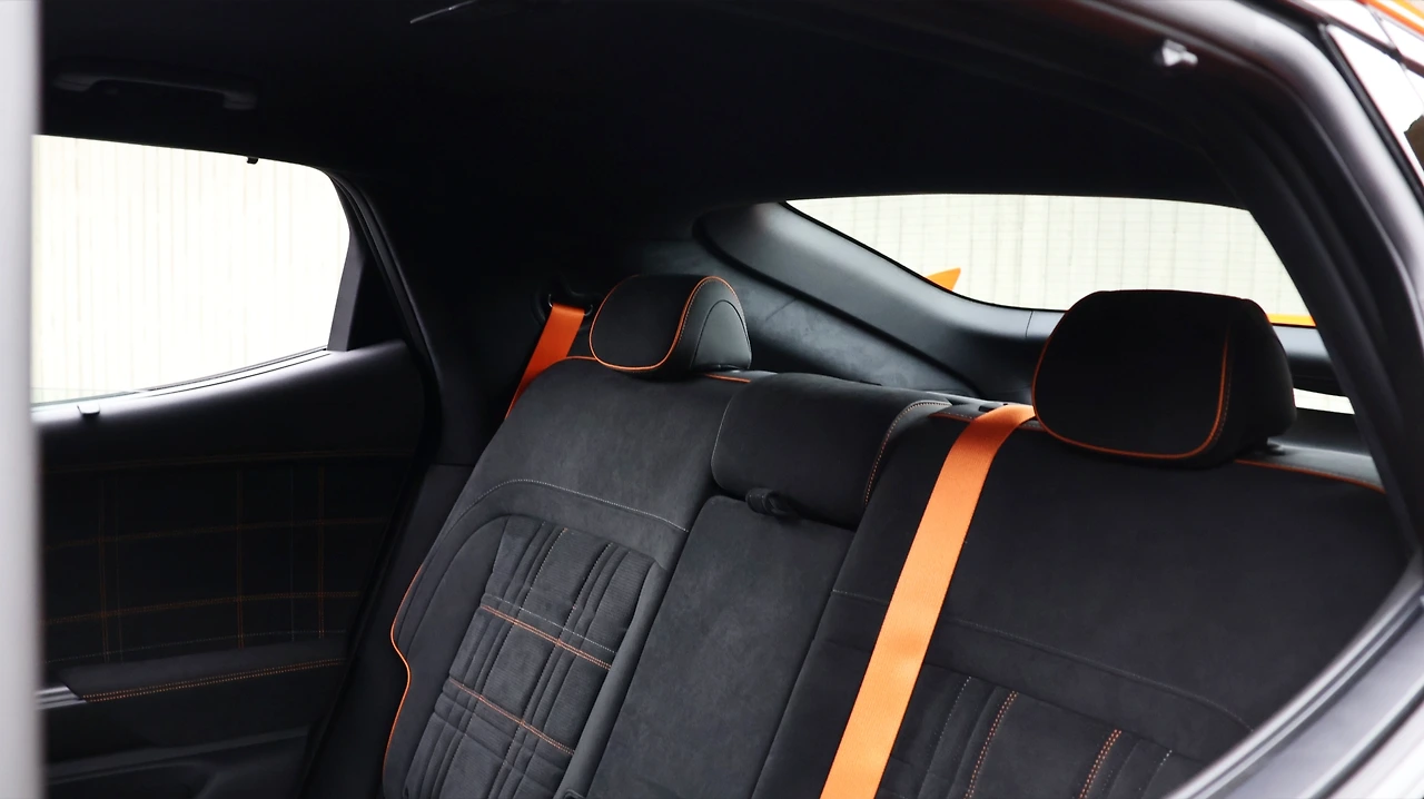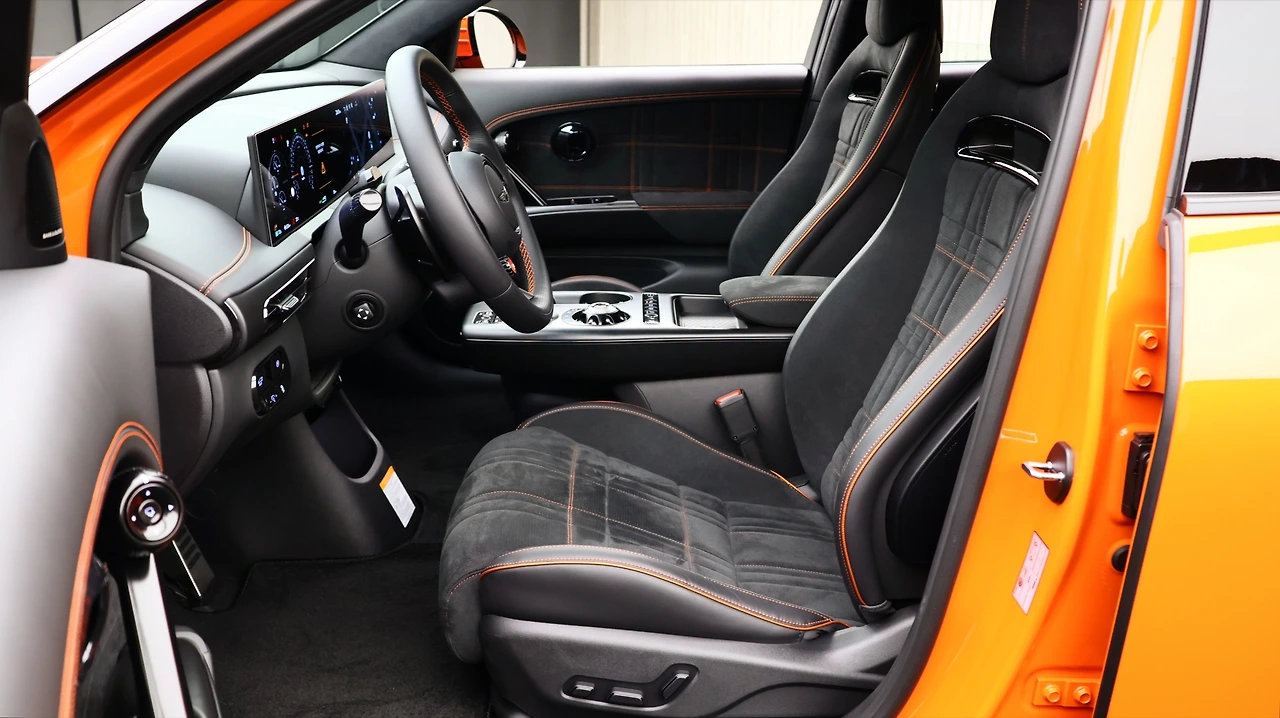 GV60 마그마는 일상 용도에도 불편함이 없는 진정한 럭셔리 고성능을 지향한다고 했다. 전기차 전용 플랫폼으로 개발된 만큼 넉넉하고 여유로운 2열 공간을 갖추었고, 이는 곧 탁월한 실용성이 된다. 레그룸은 공간과 더불어 깔끔하고 평탄한 마감을 보여주고, 실내 V2L. B필러 에어벤트, 수동식 도어 커튼, 시트 열선, 컵홀더 디자인 등 탑승객의 편의를 고려했다. 마그마 전용 스티칭 마감이나 시트벨트 등 디자인 차별화도 눈에 띈다. 스마트 파워 테일게이트는 당연히 기본, 러기지 스크린과 잔여 공간 트레이 등 프리미엄 크로스오버 다운 마감을 보여준다.
