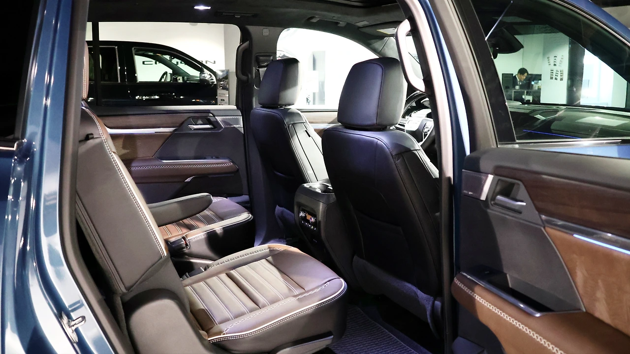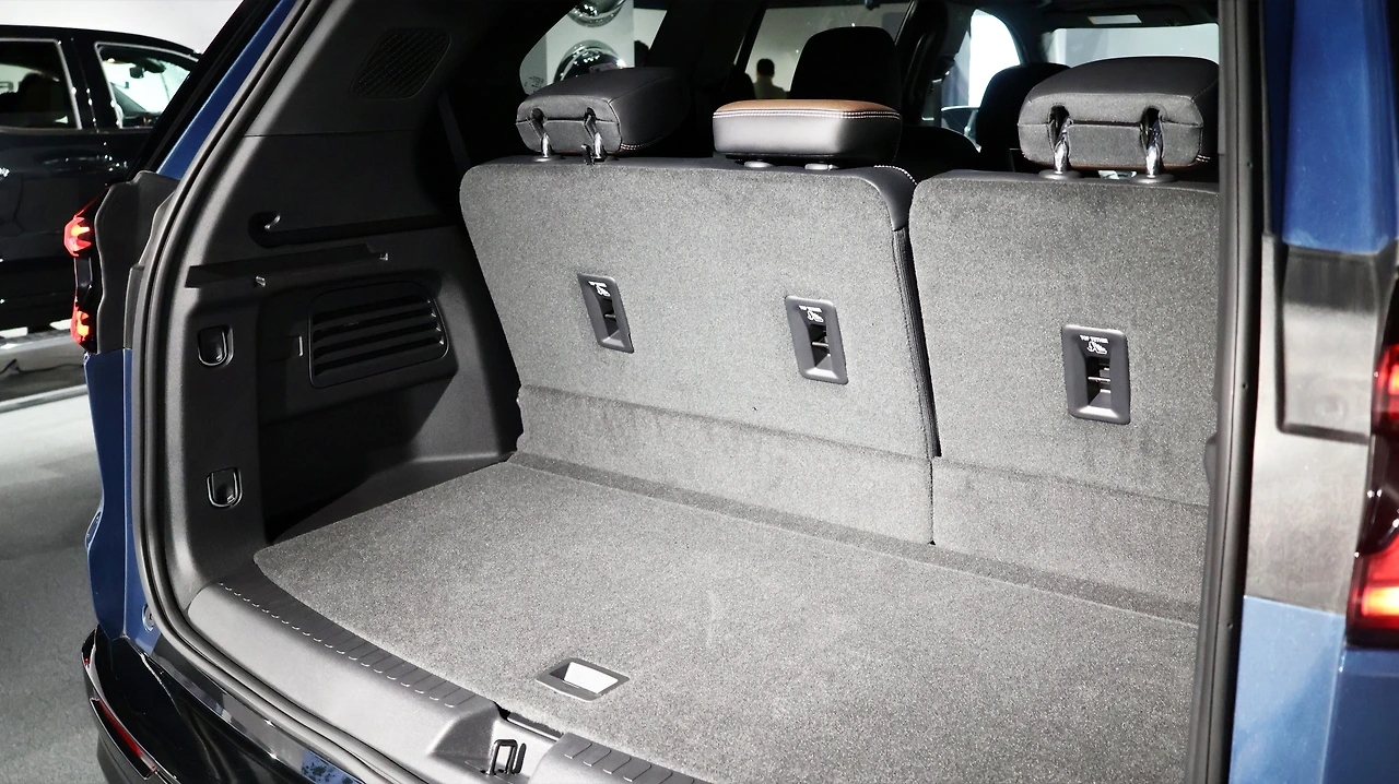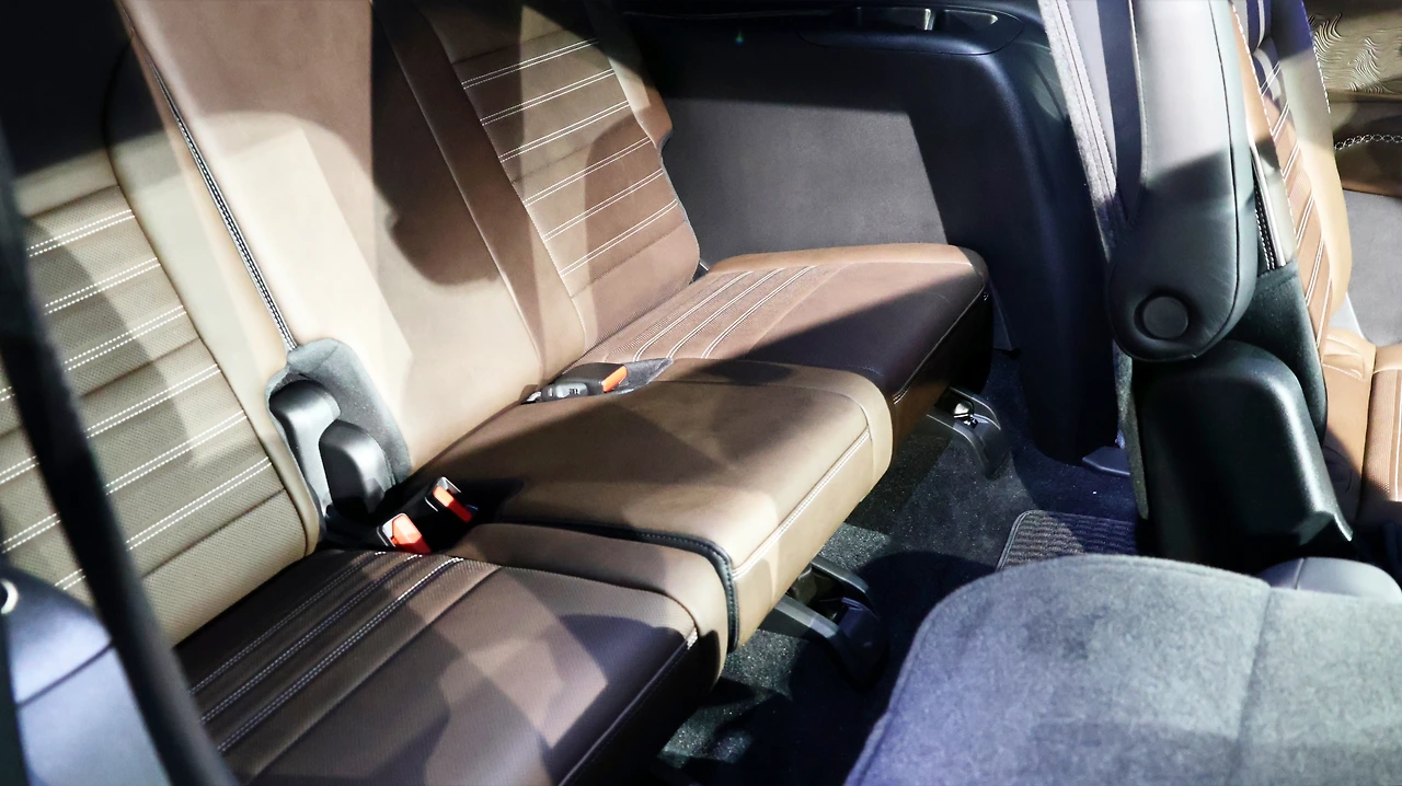 뒷좌석 공간이다. 파노라마 선루프 기본 적용과 함께, 2열 캡틴 시트 구성으로 여유롭고 개방적인 탑승 공간을 구현했다. 2열 시트까지 최상급 가죽 소재와 지형도 패턴이 각인되며, 2열 독립 공조와 시트 열선, 수동식 블라인드 등 편의 장비가 탑재되어 있는 모습이다. 3열 시트는 3인용 벤치시트 타입, 공간 자체는 경쟁 모델과 유사한 수준이다. 그나마 레그룸이 깊은 편이라 거주성에 유리하다. 오히려 3열 시트를 펼쳐도 648L라는 넓은 트렁크 잔여 공간이 장점이다. 오토 센스 파워 리프트 게이트와 전동 폴딩 기능이 제공된다.