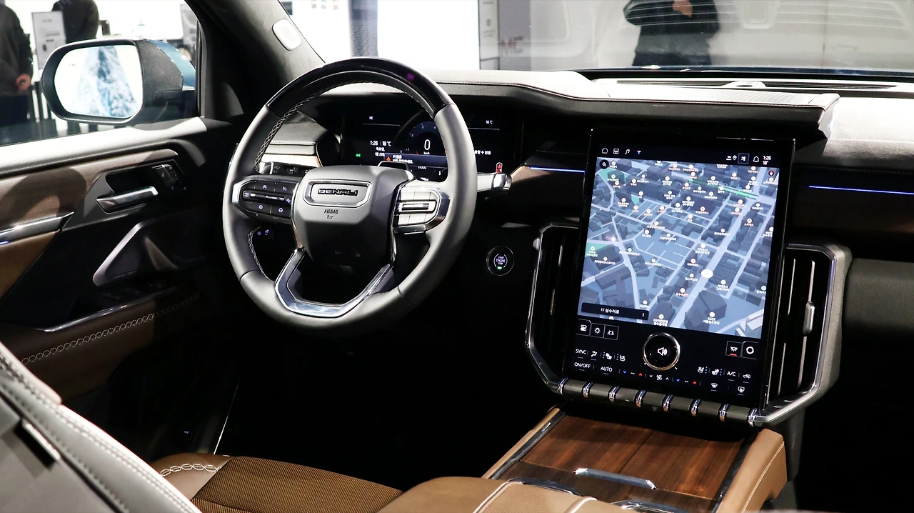 실내 공간이다. 11인치 디지털 클러스터와 헤드업 디스플레이, 그리고 15인치 버티컬 센터 스크린으로 인터페이스를 구축했다. 순정 T맵과 음성인식 서비스를 지원하며, 슈퍼 크루즈 기능까지 활성화 예정이다. 센터패시아는 물리 버튼과 다이얼로 마감했고, 센터 콘솔은 전부 수납공간, 변속기는 칼럼 레버 타입이다. 최상위 트림 드날리는 전용 스티어링 휠과 마호가니 풀그레인 가죽 시트가 제공된다. 레이저 각인 오픈포어 우드트림도 극단의 고급감을 더한다. 오디오는 BOSE 16스피커 시스템, 디지털 룸미러, 마사지 시트 등 각종 고사양 옵션이 포함된다.