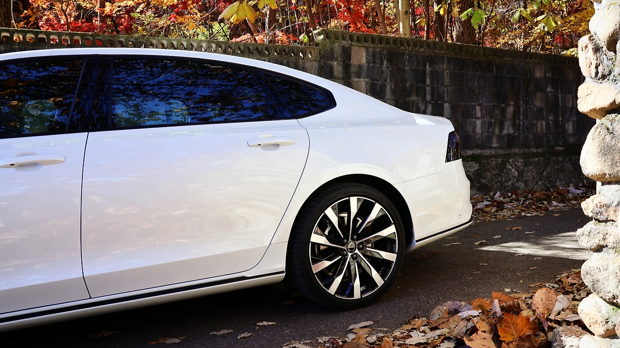 전체적인 폼팩터 자체가 뒤로 갈수록 서서히 상승하는 형태를 보인다. 단아한 측면 패널 형상은 볼보 특유의 단단함이 느껴지는 부분, 뚜렷한 캐릭터 라인 없이도 S90만의 성격은 분명하다. 개인적으로 이번 마이너 체인지에서 가장 마음에 들었던 요소는 20인치 크기의 10 스포크 다이아몬드 커팅 휠이었다. 섬세하면서도 클래식한 디자인 자체도 매력적인데, 대형 세단의 안정적인 스탠스를 돋보이게 한다. 테일램프도 T자 형태로 변경되며 전면부와 통일감을 이룬다. 그에 따라 넘버 플레이트는 트렁크 리드로 올라오고, 리어 범퍼는 깔끔한 형상으로 마감된다.