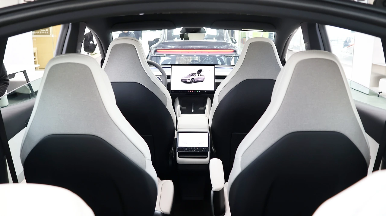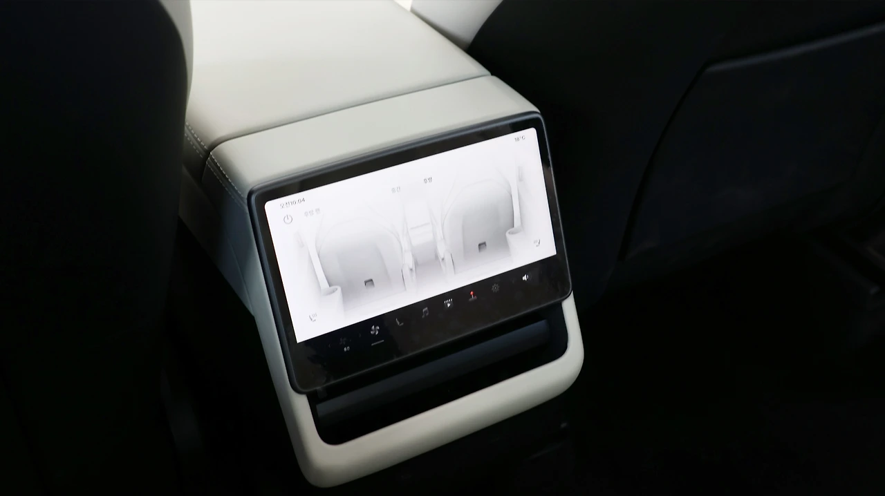 모델 Y L의 핵심은 후석 공간이다. 2열 시트는 기존 벤치 시트 타입이 아닌 독립 시트가 제공된다. 일체형 시트로 포근한 탑승감을 제공하며 전동 리클라이닝과 슬라이딩, 그리고 폴딩 기능을 포함하고 있다. 2열 암 레스트는 전동식으로 조작되어, 접어두는 경우에는 시트에 깔끔하게 밀착된다. 기존 모델 Y와 마찬가지로 2열 8인치 터치스크린이 제공되어 시트 열선과 독립 공조, 각종 엔터테인먼트 기능을 누릴 수 있기도 하다. B필러에도 에어벤트가 제공되는 모습, 글래스 루프는 시원한 개방감을 더한다.