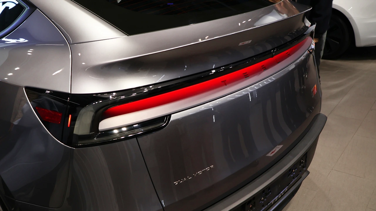 기존과는 완전히 새로운 디자인이라 설명할 수 있다. 그럼에도 전체적인 첫인상은 익숙하다. 사이버 트럭부터 테슬라가 밀어 왔던 스타일링이기도 하고, 원래 모델Y는 세부적인 디자인 요소보다는 전체적인 실루엣이 하나의 특징이라 느낀다. 쿠페와 SUV, 세단의 모든 성격이 혼재되어 있는 실루엣이다. 사진상으로는 낮게 깔려있는 프런트 마스크의 포지션이 어색할 것 같았는데, 실제로는 자연스럽기도 헸다. 반대로는 테일게이트의 밋밋함이 다소 느껴져 아쉬웠다. 참고로 주니퍼 생산 개시를 기념하는 런치시리즈는 테일게이트 배지가 차별성을 더한다.