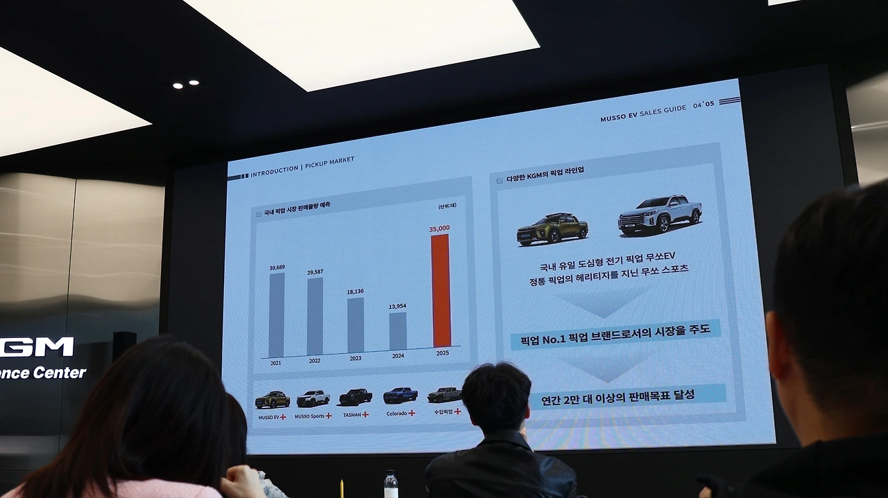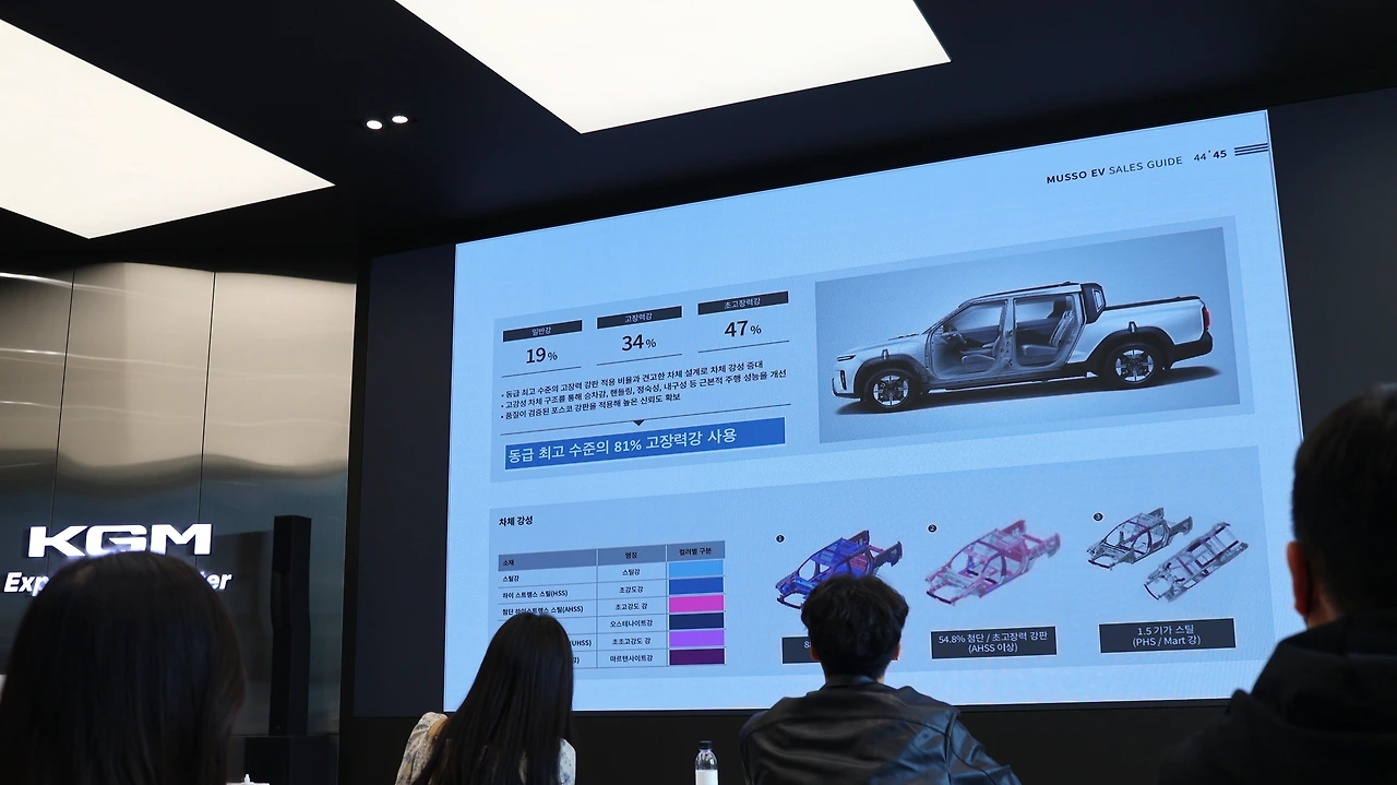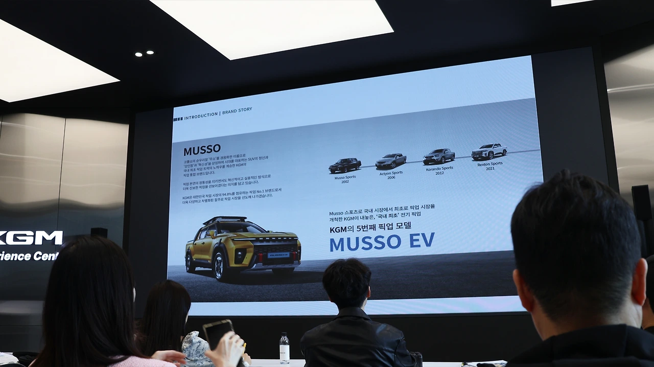 토레스 픽업의 명칭은 '무쏘 EV'로 확정 짓는다. 이는 무쏘 브랜드를 대표하는 전기 차량이라는 의미, 토레스 EVX의 BIW를 바탕으로 설계되지만 '픽업트럭'이라는 목적에 충실하다. 그리고 무쏘 EV는 차세대 픽업트럭이라는 사실보다 '전기차'라는 점이 대목이다. KGM이 유일무이한 픽업트럭 제조사라는 타이틀은 사라졌지만, 이제 국내에서는 유일하게 전기 플랫폼 기반의 픽업트럭을 생산하는 브랜드가 되었다. 그렇듯 렉스턴의 리뱃징 모델 '무쏘 스포츠&칸'은 경제형으로, 무쏘 EV는 친환경 도심형 픽업트럭으로 시장을 공략하게 된다.