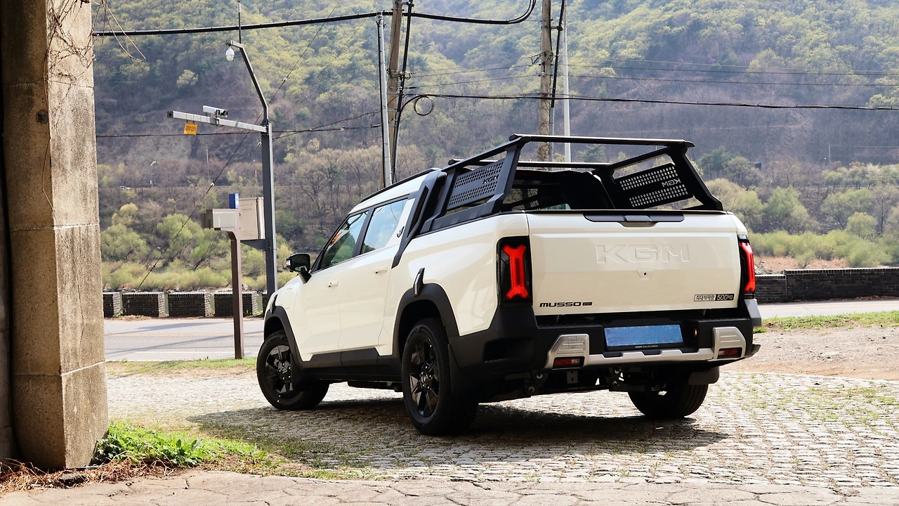 시승 차량은 무쏘 EV 2WD 블랙엣지 사양이다. '블랙엣지' 등급은 기본 MX 대비 블랙 색상으로 커스텀 된 외관 디자인이 추가된다. 실내에는 천연 가죽 시트와 스웨이드 마감 등 디자인이 개선되는 점과 더불어 편의 장비가 더해진다. 워크인 디바이스, 2열 히팅 시트, 디지털 키, 무선 충전 패드, 알파인 오디오와 도어 스팟 램프 등이 그 품목이다. 추가 선택 옵션으로 롤바와 루프 플랫 캐리어가 포함된 '스타일업 패키지'와 '3D 어라운드 뷰 모니터링 시스템'이 추가되어 있는 차량이다. 참고로 AWD를 선택한다면 셀프 레벨라이저까지 기본이다.
