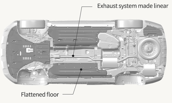 플랫폼 혁신은 실내 공간만을 변화시키지 않는다. 보통 자동차 익스테리어 디자인이라 하면 바디 패널만을 떠올릴 것이다. 소비자가 그 이면을 들여다볼 일은 없기 때문에 당연하다. 하지만 공기 저항계수는 자동차의 외부로 노출된 모든 형상과 관련을 맺는다. 의외로 공기의 점성으로인한 마찰 저항은 자동차의 하부 구조에도 큰 영향을 받는다. 위 사진은 쏘나타의 3세대 플랫폼을 적용한 싼타페 TM 페이스리프트의 하부구조다. 평평한 언더바디 패널을 적용함으로써 차체 빈틈으로 유입되는 공기의 저항을 최소화했다.
