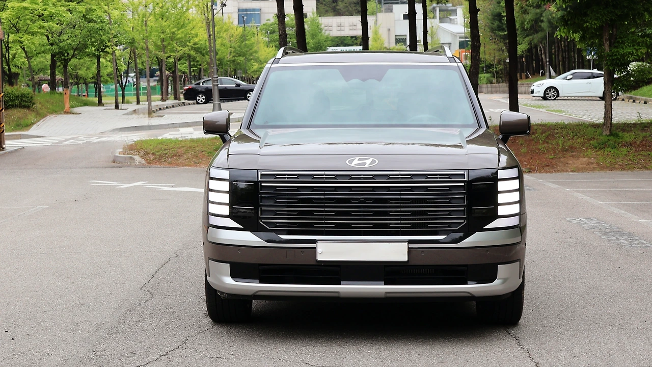 팰리세이드 풀체인지의 첫인상은 대담하다. 기존 팰리세이드의 캐릭터와 같았던 수직형 DRL을 더욱 두꺼운 형상으로 전면부 양 끝에 배치했다. 덕분에 차량은 더욱 넓고 웅장해 보이는 모습, 라디에이터 그릴은 수평 형태로 그 중심에도 포지셔닝 램프를 배치해 현대차의 패밀리룩과 연결한다. 메인 헤드램프는 히든 타입 가니시에 내장시킨 점도 디테일한 부분이다. 전면 범퍼 하단부는 액티브 플랩 타입으로 디자인되면서, 평소에는 막혀있다. 일반적인 SUV와 달리 알루미늄 색감의 소재로 범퍼를 마감한 점도 고급화 SUV를 지향하는 면모에 가깝다.
