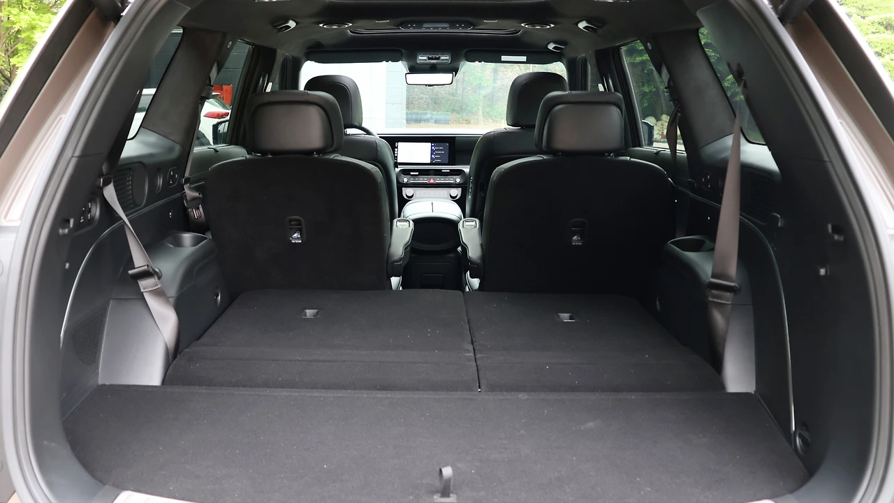 여유로운 공간을 바탕으로 한 2열 공간은 편안한 탑승감을 제시한다. 2열 독립 공조와 통풍 시트, 전동 리클라이닝 등 편의 장비 수준도 출중하며 옵션으로 다이내믹 바디케어 시트 적용이 가능하다. 3열 시트는 3인석으로 전동 슬라이딩과 리클라이닝, 그리고 열선과 에어벤트가 마련된다. 3열 시트의 경우 레그룸 높이가 살짝 부족하지만, 2열 시트 거리 조절로 보완하면 나름 탈만한 공간이 된다. 리어 오버행이 길어서인지 3열 시트보단 트렁크 공간의 여유로움이 크고, 전 좌석 원터치 폴딩 기능은 정말 편리했다.
