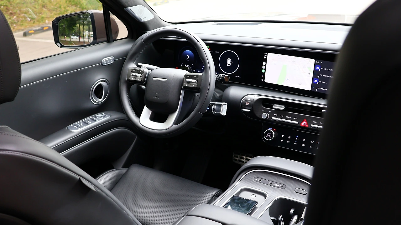 실내 디자인은 고급스러운 거주 공간을 지향한다. 12.3인치 디지털 클러스터와 스크린 전체를 매립한 대시보드 디자인, 그리고 센터페시아에 다수 버튼을 유지하는 방식으로 직관성을 유지했다. CCNC 디스플레이는 무선 폰 프로젝션까지 지원한다. 기어 레버를 칼럼 타입으로 변경하며 중앙 수납공간이 확장된다. 스티어링 휠은 3스포크 타입, 각종 인조가죽 마감과 양문형 콘솔 박스가 고급스러움을 더했다. 시트는 나파가죽 소재, 운전석 에르고 모션 시트, 1열 릴렉션 컴포트 시트, 디지털 센터 미러, HUD, BOSE 프리미엄 사운드 등 옵션 수준이 높다.