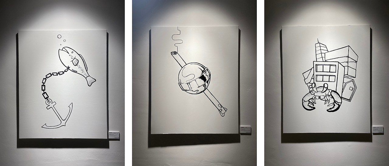 그 당시에 살아가며 느낀 점과 또 다른 이에게 말해주고 싶은 내용을 저는 글이 아닌 그림으로 흰 종이에 펜 하나로 기록을 남겼었고 그 기록이 저의 첫 개인전인 '인간 생활'의 라인아트들이 되었습니다.