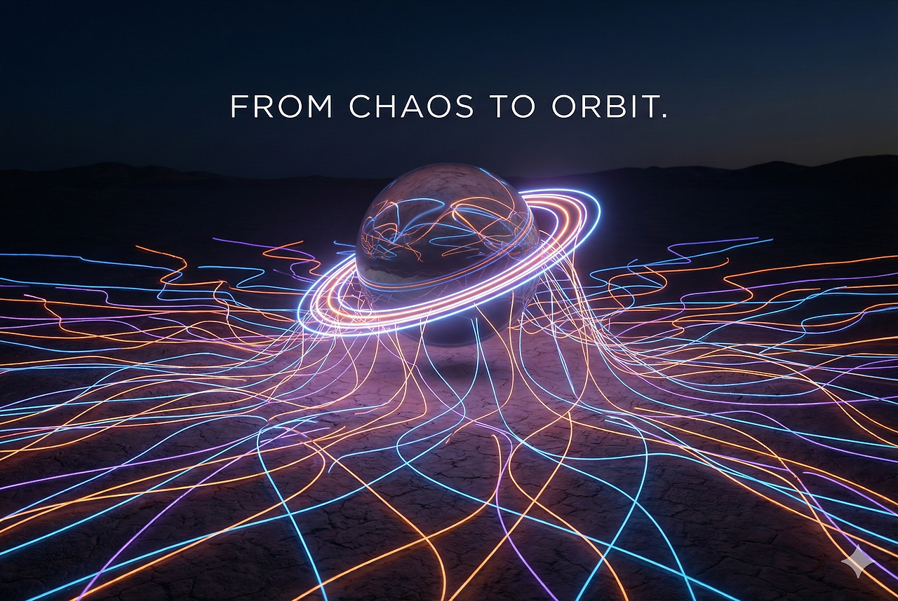 놀랍게도 그 무질서해 보이던 선들이 궤도(Orbit)를 그리기 시작한다.