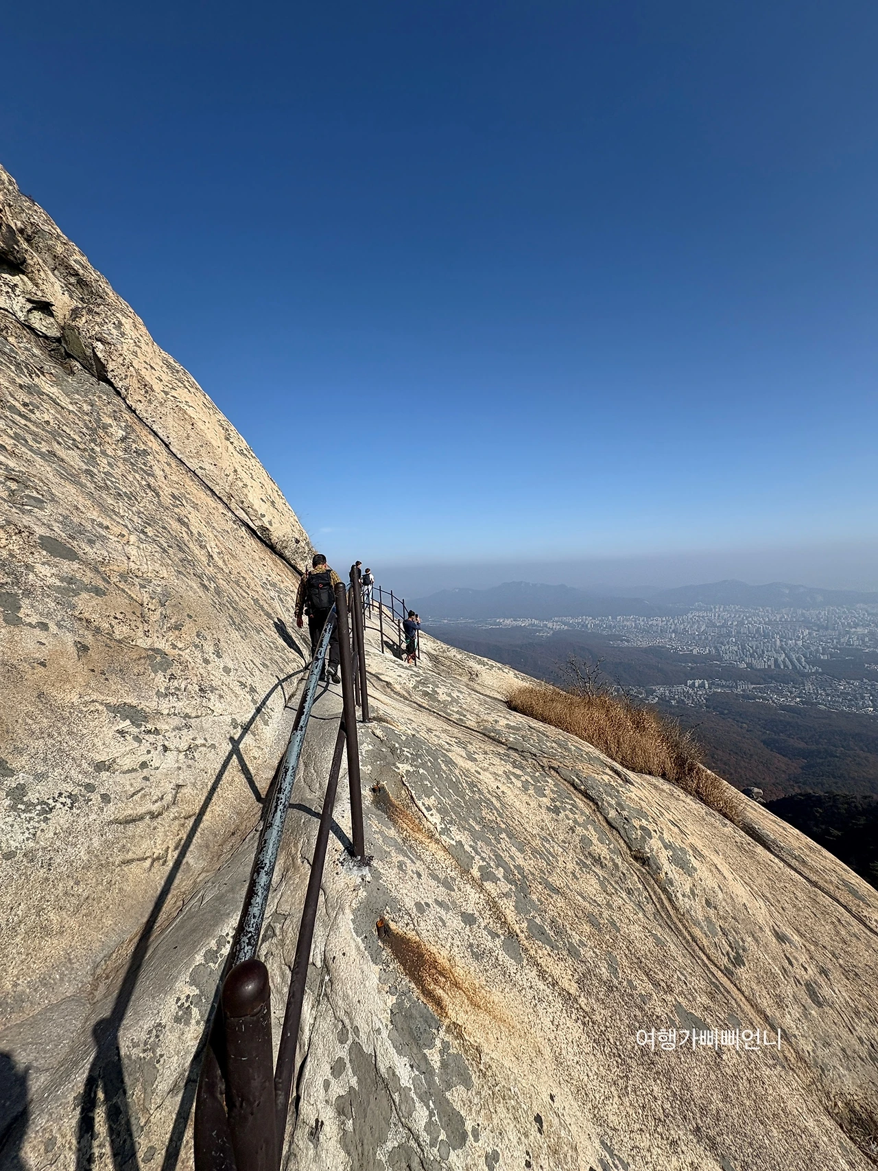 순서를 기다리며 조심스레 서 있는 등산객들을