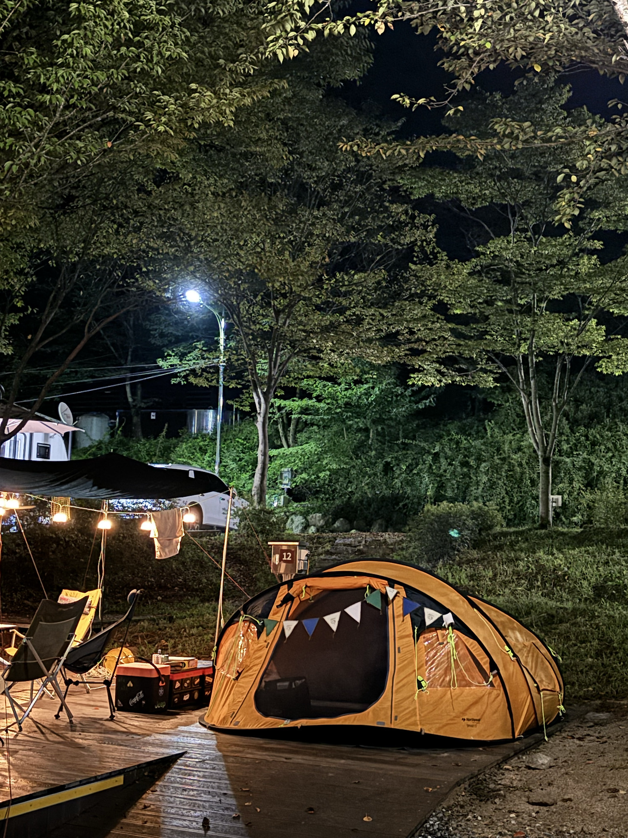 캠핑장에 도착해서 남편이 타프를 치는 동안 우리 셋은 테이블과 의자를 모두 조립하고, 텐트를 펼쳐주면 내부잠자리를 만들었다. 아이들이 어릴 때는 오롯이 남편과 내가 하던 일을 이제 두 아이가 함께하니 30분도 채 안되어 캠핑장비가 모두 설치되었다. 어느 방향을 바라보면 풍경이 좋은지 테이블 방향을 약간씩 바꿔가며 정한 후 둘러앉았다. 따뜻한 차 한잔씩을 나누며 잔잔한 음악을 들으며 가을의 색을 띠기 시작하는 산을 감상했다. 계절이 바뀌면서 산의 색도 변하는 모습이 신기하고 재미있다며 함께 잠시 이야기를 나눈 것 같은데 금방 어둑어둑해졌다. 남편은 숯불을 피워 두툼한 목살을 먹기 좋게 구워주었다. 오랜만에 숯향 나는 돼지고기를 먹으니 정말 맛있다며 소란스럽게 먹는 저녁식사가 재미있었다. 급하게 출발하는 바람에 쌈장도 없이 쌈채소도 없이 덜렁 김치만으로 먹는 고기인데도 아주 맛있게 먹었다. 배불리 먹고 나서 치울 새도 없이 숯불이 꺼지기 전에 꼭 먹어야 한다는 스모어쿠키를 구웠다. 비스킷 위에 마시멜로우를 올리고 초코를 올리고 그 위에 다시 비스킷을 올려 구워 먹는 쿠키인데 캠핑 오면 종종 해 먹었던 추억의 간식이었다. 모두 배가 빵빵하게 먹은 후 이번캠핑에 꼭 해야만 한다는 또 한 가지, 보드게임(스플렌더)이 시작되었다. 승부욕이 불타올라 ‘한판만 더‘를 여러 번 외치다 보니 두 시간이나 흘렀다. 캠핑의 마지막코스는 뭐니 뭐니 해도 불멍과 함께 먹는 라면이 최고다. 차가워진 밤공기와 함께 라면을 먹으며 풍성한 한가위의 캠핑을 마무리했다.