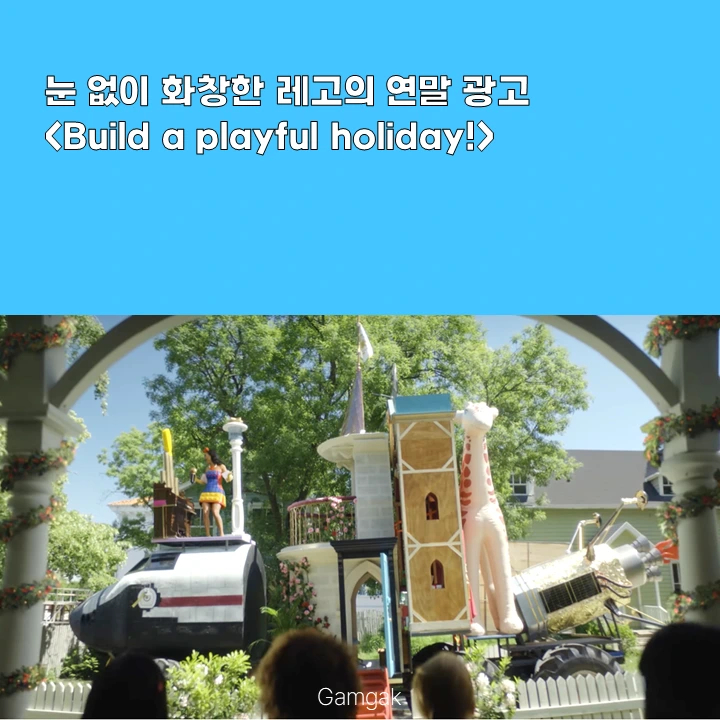 눈이 없이 화창한 레고의 홀리데이 광고. 하지만 선물과 마음을 전달하라는 홀리데이 시즌의 메시지는 가득 쌓인 눈처럼 포근하게 전해진다.