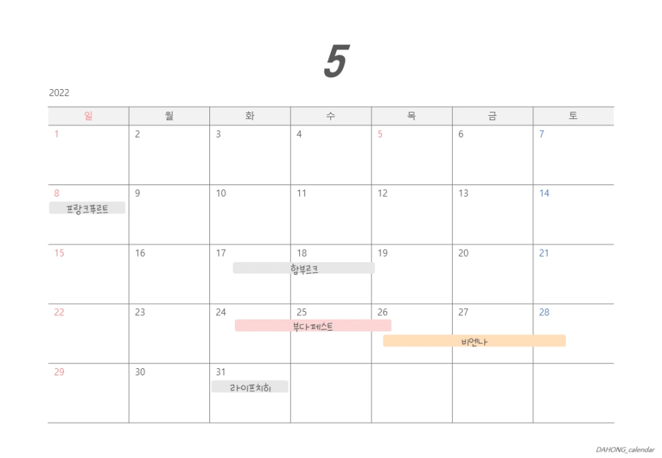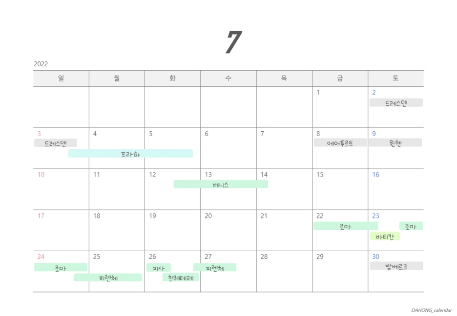 캘린더에 표시된 여행 일정 외엔 독일 뷔르츠부르크 내 기숙사에 머물렀다. 뷔르츠부르크는 여행지가 아닌 거주지였으므로 여행지에서 제외하도록 하겠다.