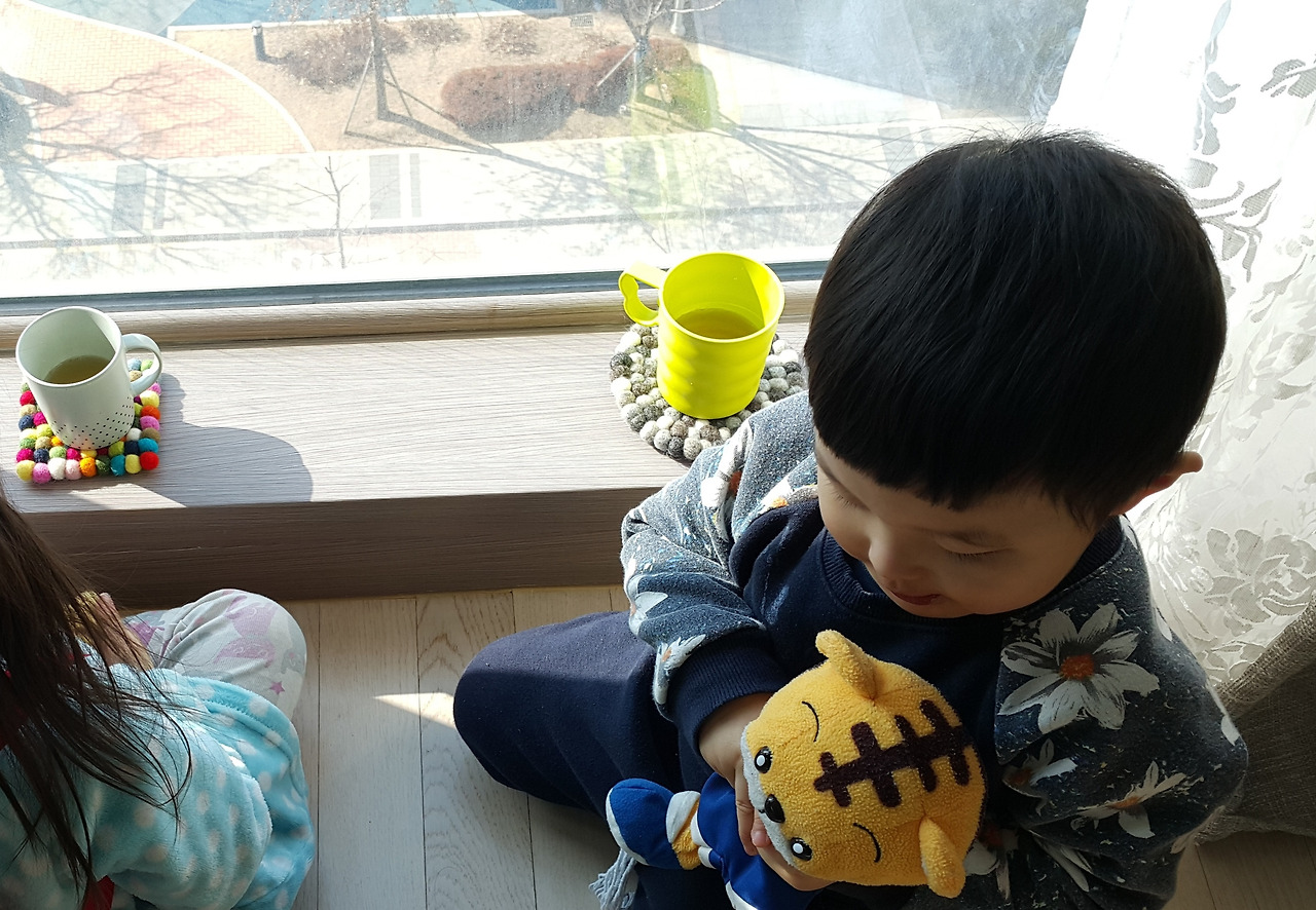 아이들 어릴 적 사진을 보고 있다. 네다섯 살 무렵의 겨울. 오후면 보리차를 컵에 담아 예쁜 티코스터를 깔고 창가에 나란히 앉아 광합성을 하곤 했다. 해가 늦게까지 들어오는 남서향집, 마침 아파트의 조경이 한눈에 잘 보이는 가든뷰라 계절이 오고 가는 것과 사람들이 오고 가며 저마다의 인생을 사는 것을 바라보곤 했다. 아이들은 애착인형을 초대해 함께 그 시간을 즐기곤 했고, 아이들을 키워낸 칠 할의 호비는 티타임의 단골손님이었다.