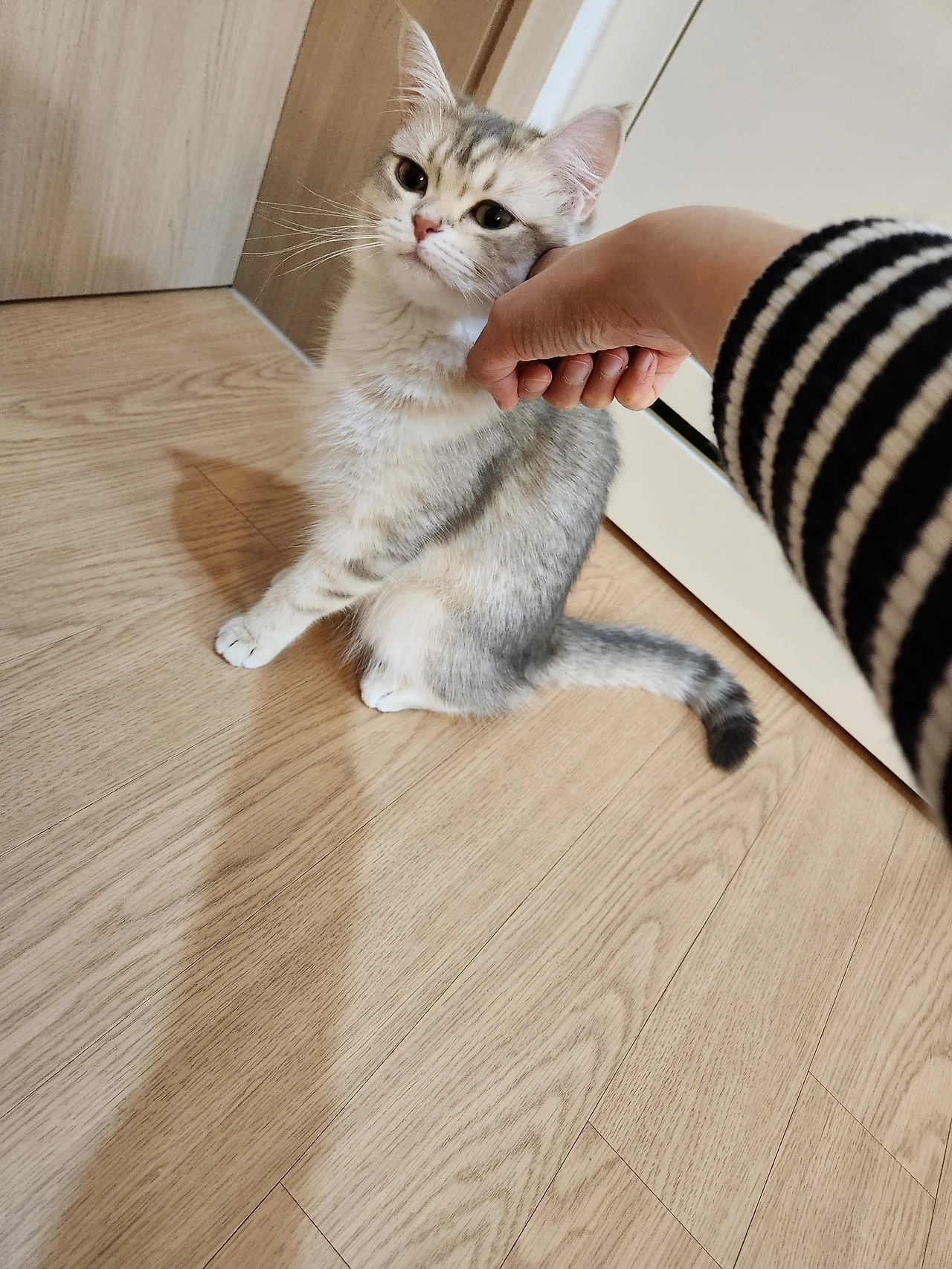 루루와 집사의 교감 훈련. 집사가 "손" 하면 루루는 손을 올리고, "하이파이브" 하면 하이파이브를 한다. "코" 하면 검지손가락에 코를 대는 루루는 이제 "기다려"와 "먹어!" 훈련에도 돌입했다. 언어습득능력이 매우 양호하다. 봄이 완연할 무렵이면 아마 기다림의 의미를 깨닫고, 참고 기다릴 줄 아는 고양이가 될 것 같아 집사는 뭉클한다.