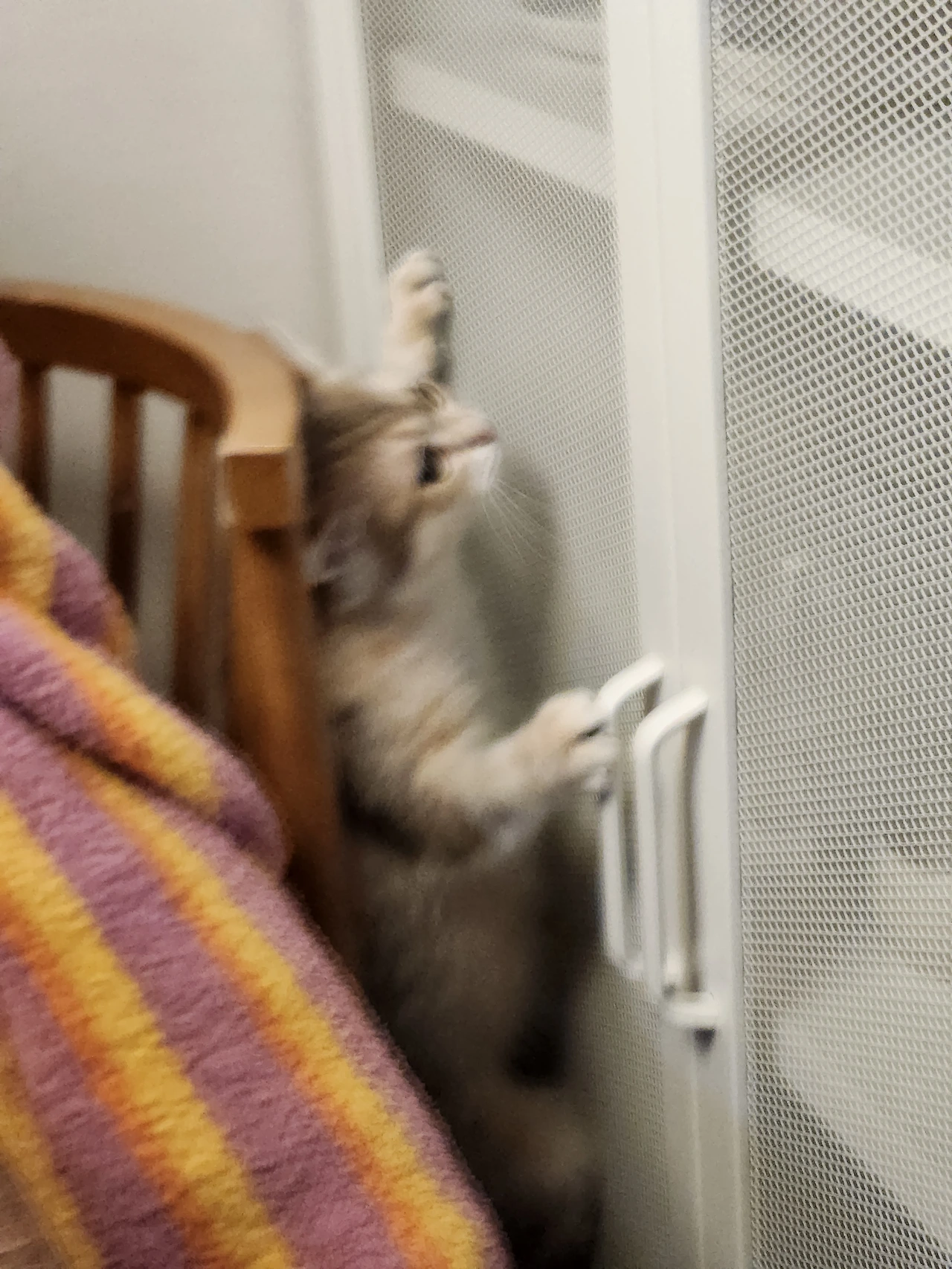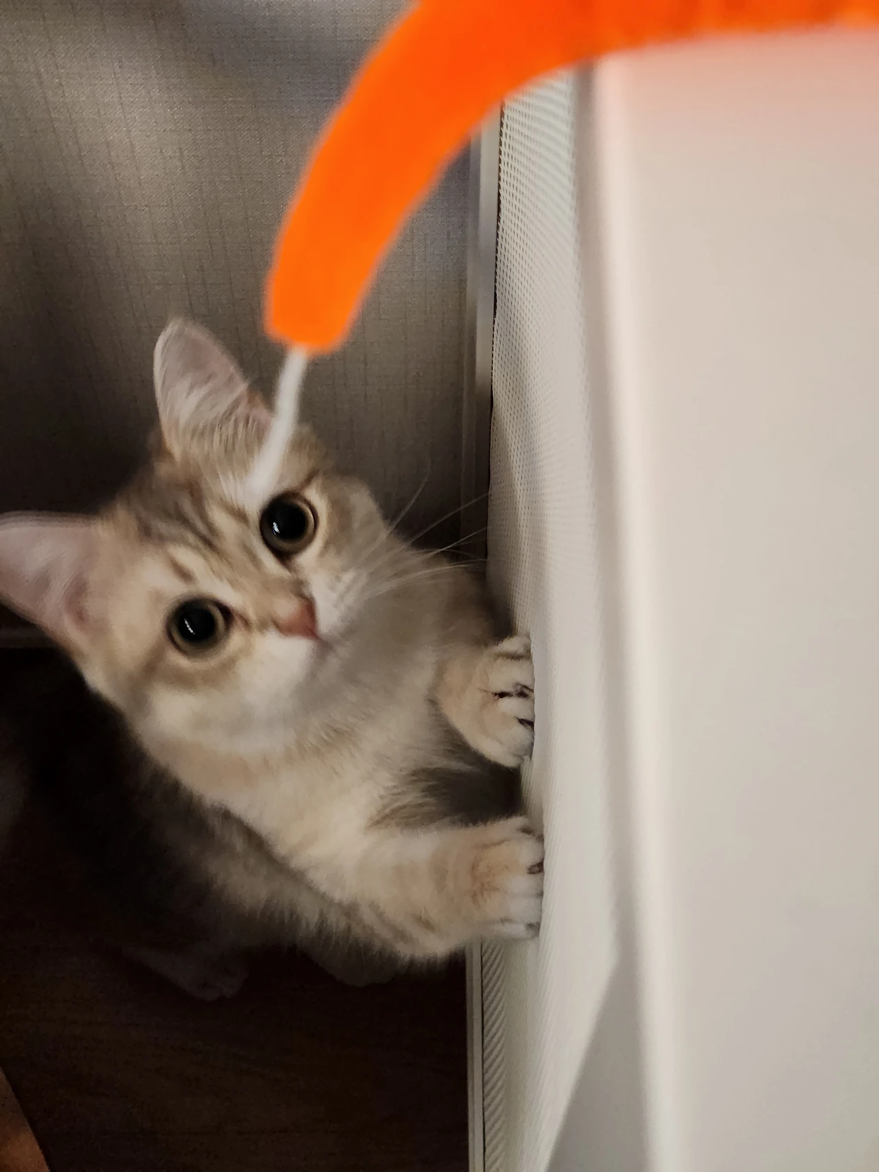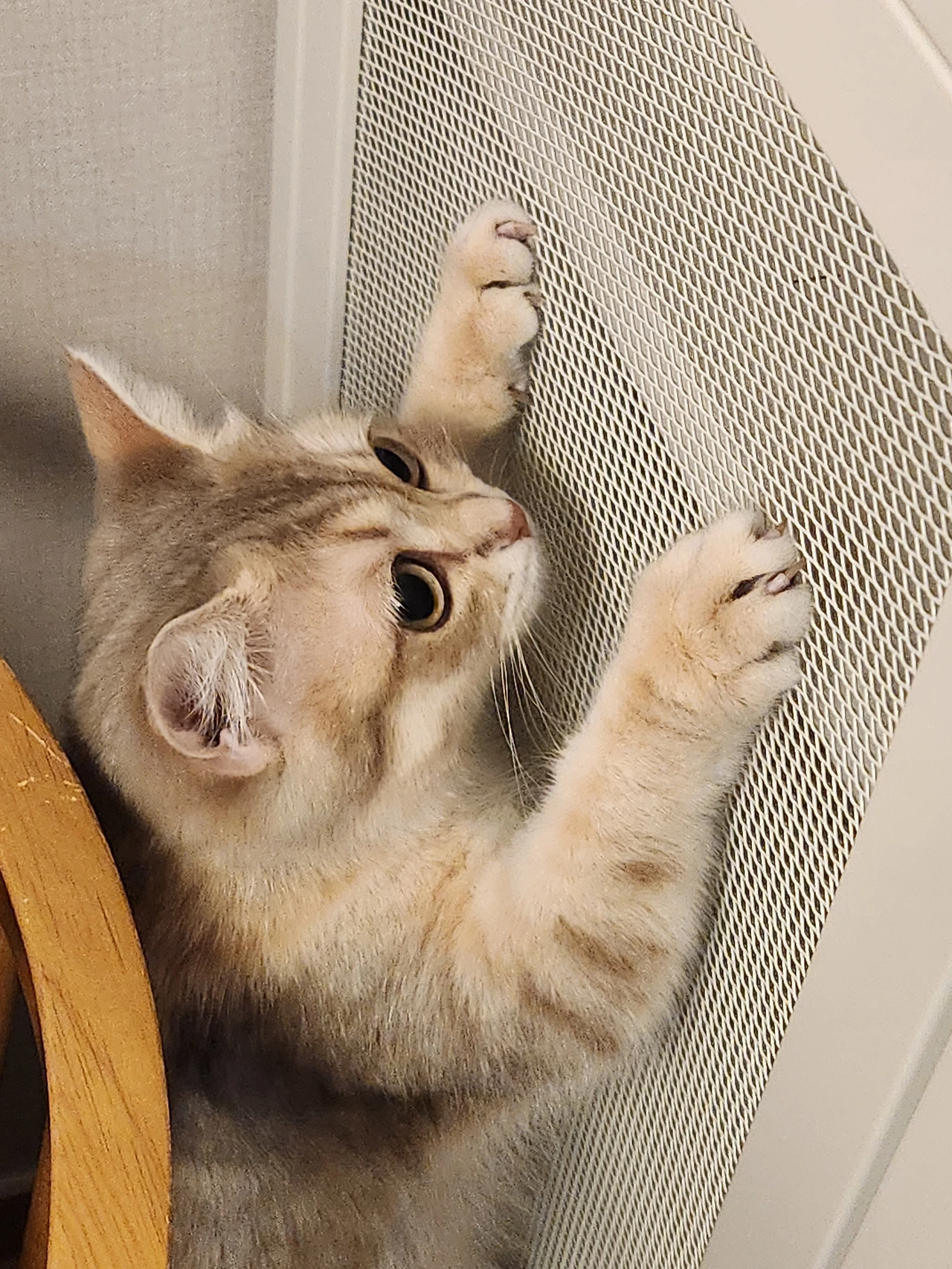 오늘은 루루가 그릇장의 철그물망 문을 타고 오른다. 다시 캣파이더맨의 등장. 아아니 스파이더냥인가. 애벌레를 가지고 놀고 싶은가 보다. 집사가 늘어져 있으니, 루루가 집안의 활기를 몰고 올 모양.