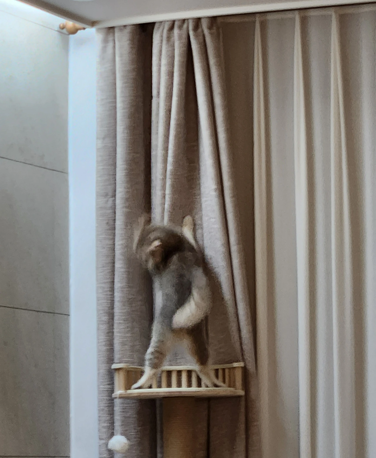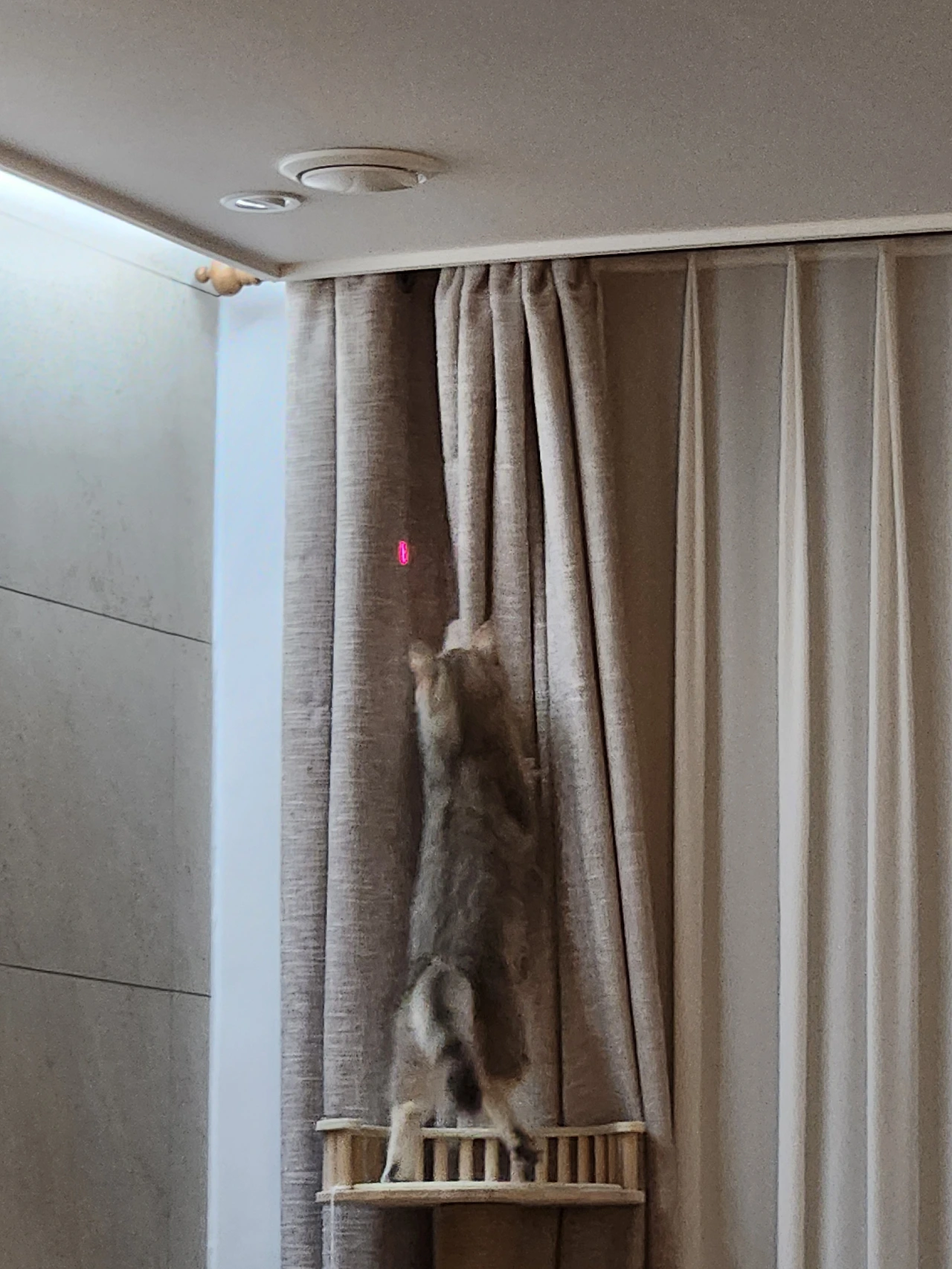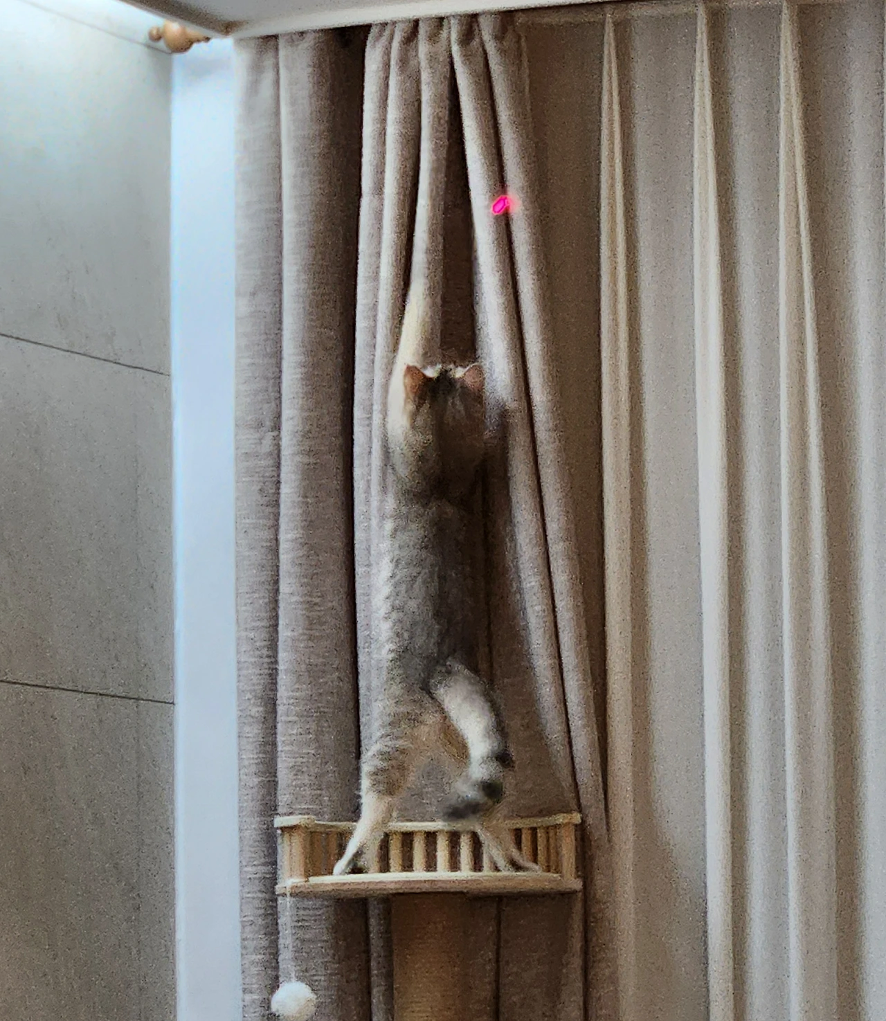 커튼 꼭대기까지 올라간 순간을 포착하지 못해 아쉽