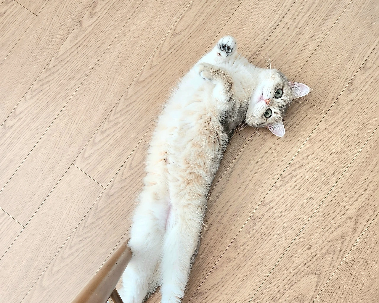 루루는 저녁 10시에 하루의 마지막 식사를 한다. 아기 고양이 시절부터의 오랜 습관으로, 오독오독 사료를 맛나게 씹어 먹는 소리가 들려오면, 10시구나 싶은데 놀랍도록 정확하다. 그즈음 돌돌이를 돌려 이부자리 정비를 마치고, 잘 밤용 패드를 촤라락 펴면 귀신 같이 루루가 달려와 패드 안을 파고든다. 일상용 패드와 잘 밤용 패드의 사이에자리를 잡고 작은 코를 벌름벌름하며 섬유 냄새를 맡는 루루. 포근하고 부드러운 이불 위에서 루루가 행복에 겨운 뒹굴거림을 하다 아예 자리를 잡는다. 이불을 빨아 의자들을 멀리 두어 그 위에 널고 나면 꼭 체크인을 하던 우리 애들 어린 시절이 떠오르곤 하니, 집사는 막내 루루의 매일밤 체크인이 반갑다. 귀여운 녀석에게 질척여 볼 요량으로 슬쩍 옆자리에 누우면 뒤도 돌아보지 않고 자리를 뜨는 그녀, 이게 또 매력이다. 역시 그녀는 밀당의 귀재로 이 치명적인 매력에서 헤어 나올 수 없는 것은 집사의 숙명 같다.