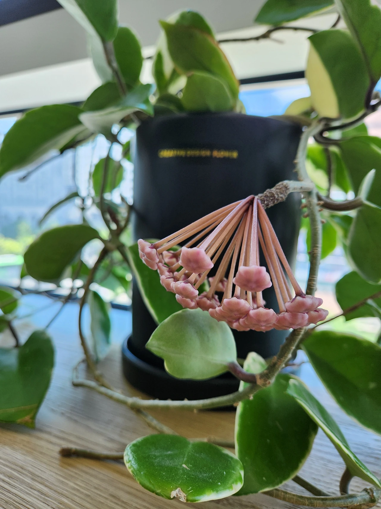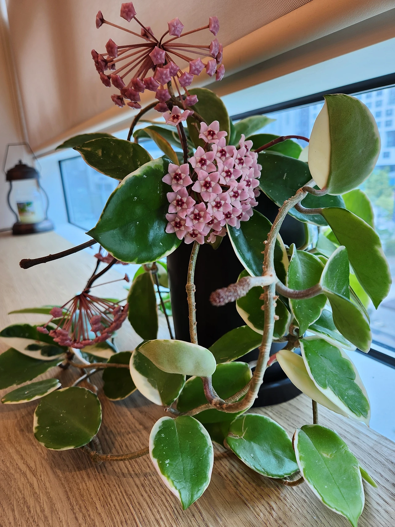 올 때의 설렘만큼 만개의 환희도 길다. 솜씨가 좋은 금손의 능력자가 하나하나 정성스레 빚는다 해도 이처럼 예쁘게 빚을 수는 없을 것 같다. 따뜻한 볕과 솔솔 부는 바람, 자연과 호야가 해낸 일. 가까이 보아도 예쁘고, 멀리 보아도 예쁘다. 오래 보아도 예쁘고, 스치듯 보아도 예쁜 호야꽃을 올해도 이리 만날 수 있음에 감사한다.