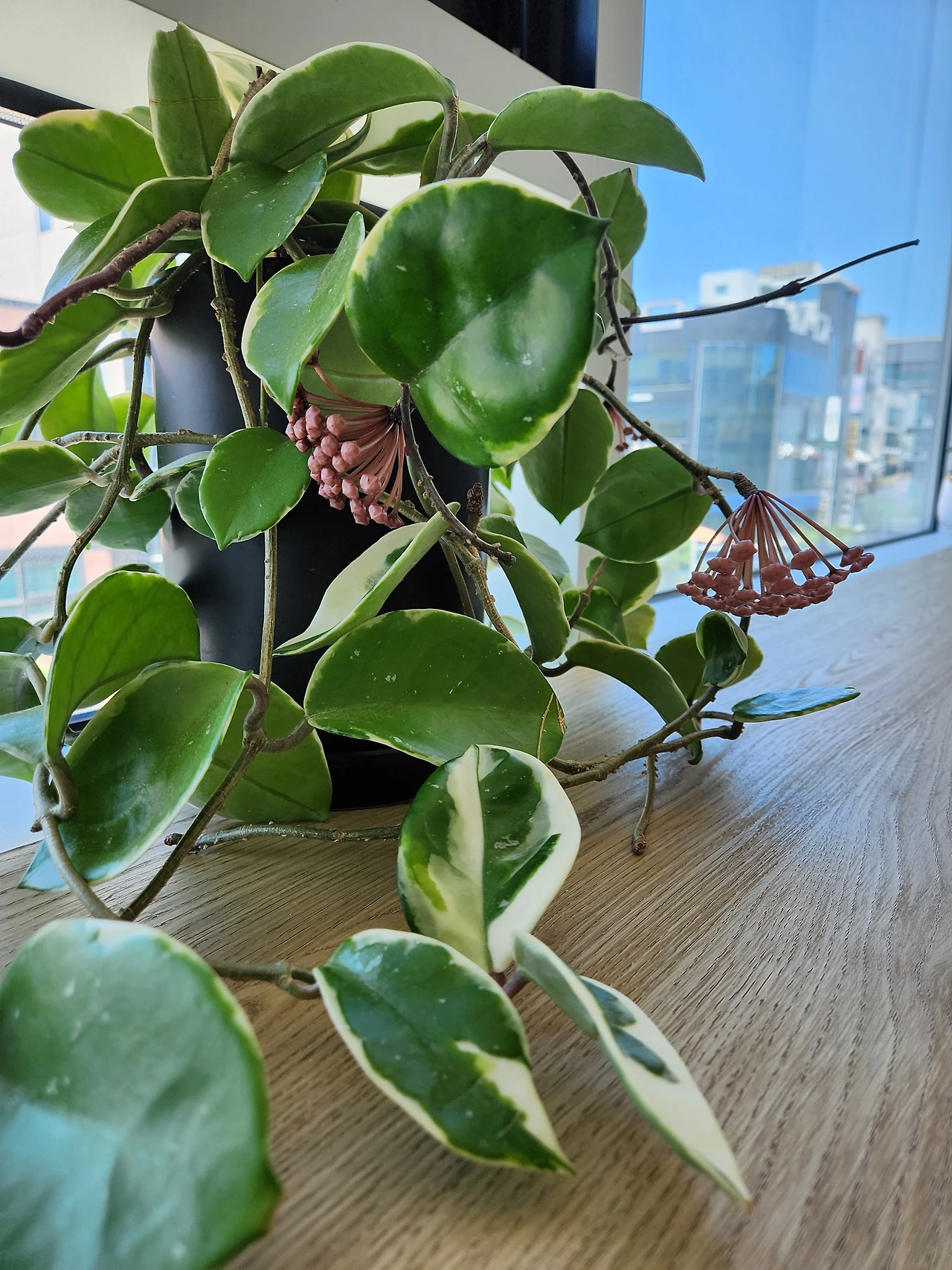 이 자리에 있다. 오고 가는 환자분들을 기억하는 식물들과 첫 마음을 잃지 않으려 애쓰는 누군가, 병원에서 하루의 가장 많은 시간을 보내는 또 누군가와 환자분들의 아픔이 낫길 바라는 마음으로 식물들을 돌보는 누군가가 이 자리에 있다. 비록 이 마음만으로는 어찌할 수 없는 일들이 수두룩하게 일어나기도 하지만, 마음을 알기 어려운 세상에서 적어도 이 마음을 아는 누군가가 있다면 그것으로 괜찮지 않을까 생각해 보며 그렇게 또 한 번의 호야꽃을 본다.