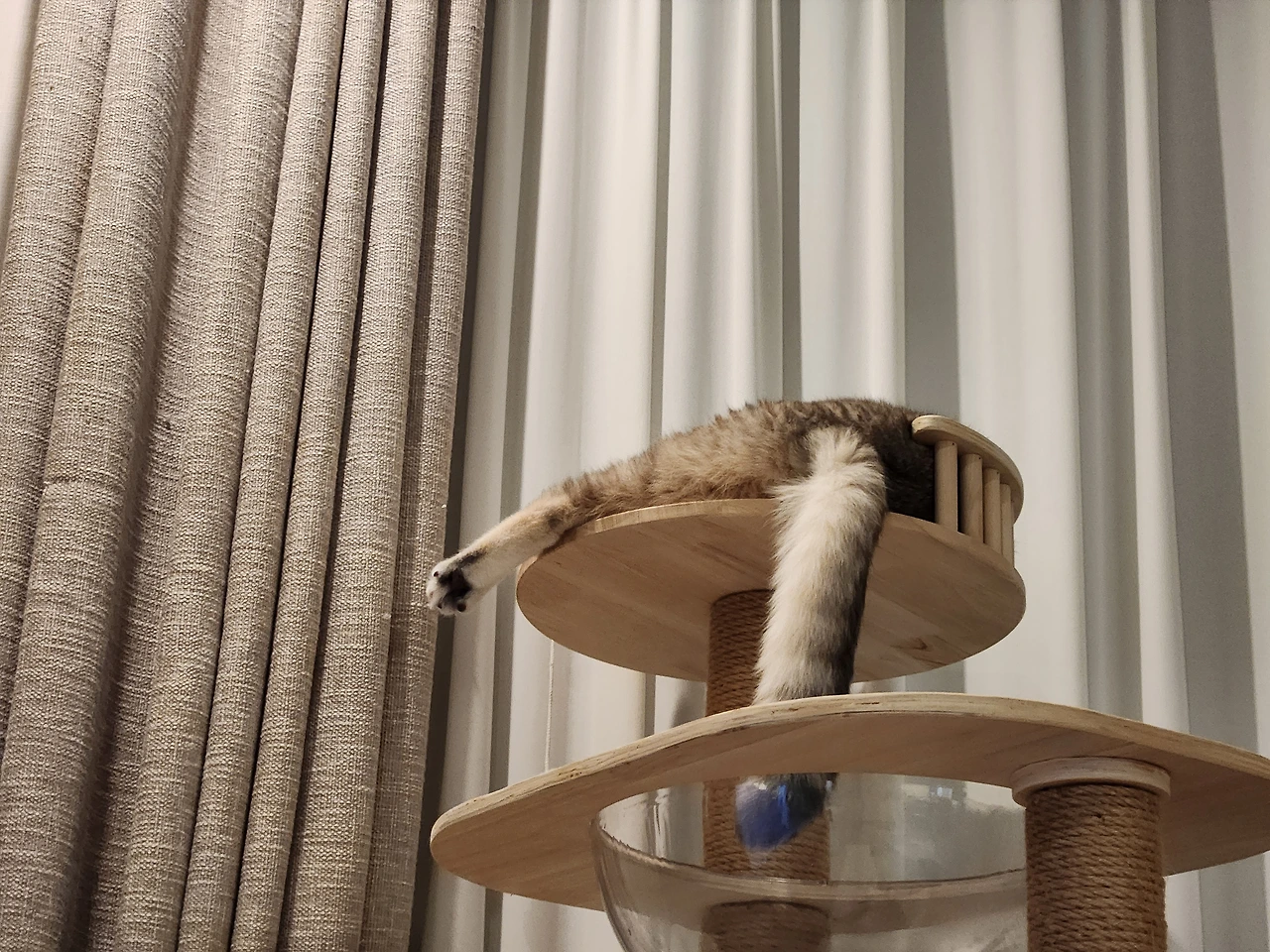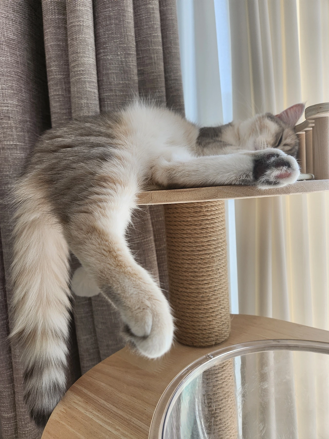 캣타워의 꼭대기는 이제 좀 비좁다냥
