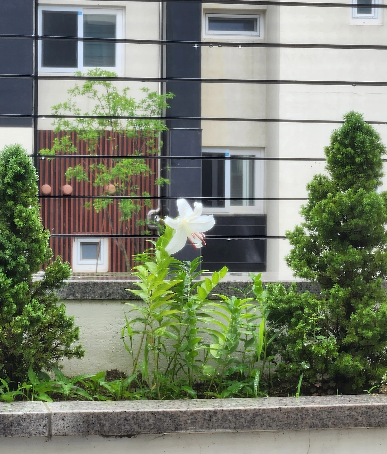 올해는 우리 집 백합들의 수난시대인가. 현관 옆 화단의 진분홍 백합은 눈부신 개화의 순간에 들이닥친 돌풍으로 힘겹게 솟아 올린 가녀린 꽃대가 댕강 꺾여 유명을 달리하더니 테라스의 흰 백합은 우중개화다. 일 년을 기다린 개화의 순간에 볕 한 번 쨍, 하게 못 받아보고 내년을 기약해야 한다니.... 우중에 찬란하게 핀 하얀 백합이 애처롭게 아름답다.