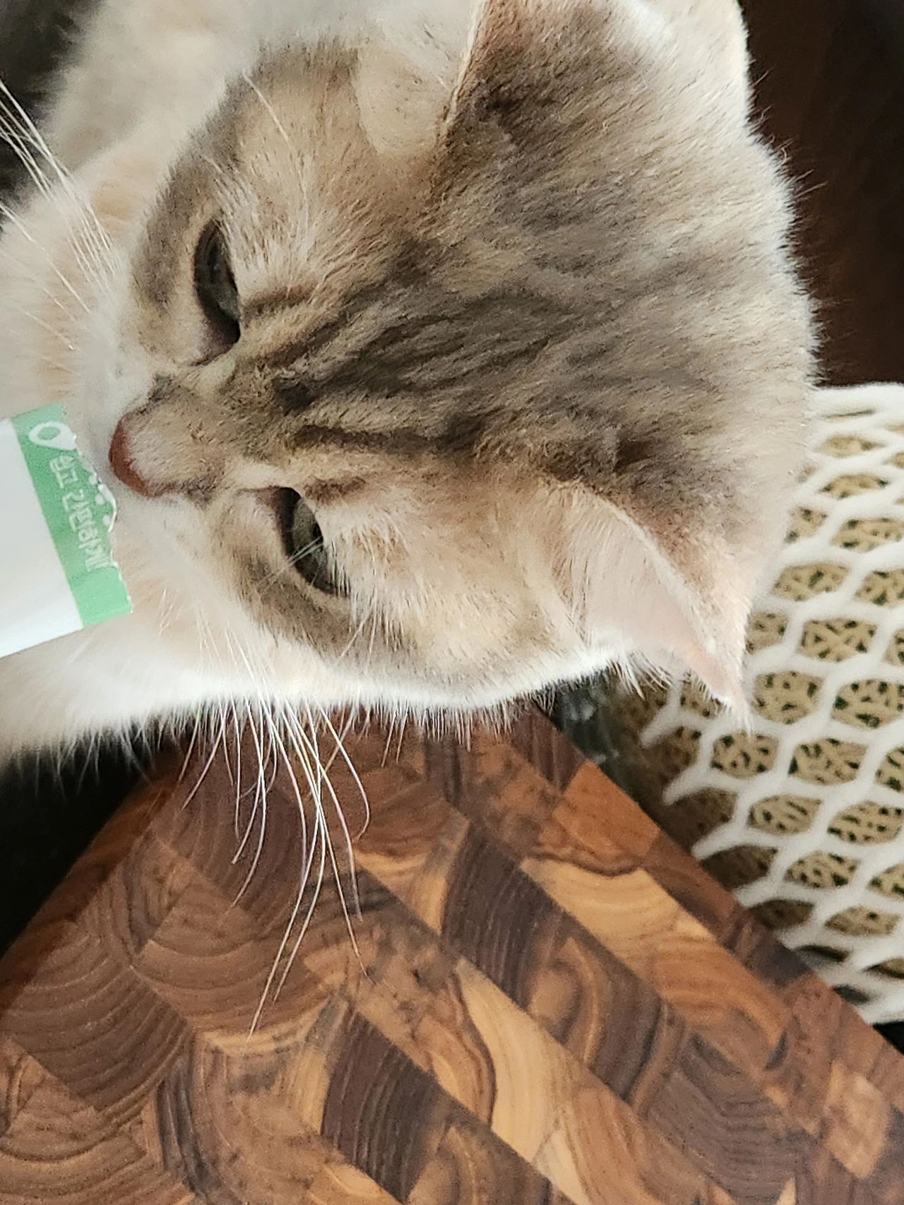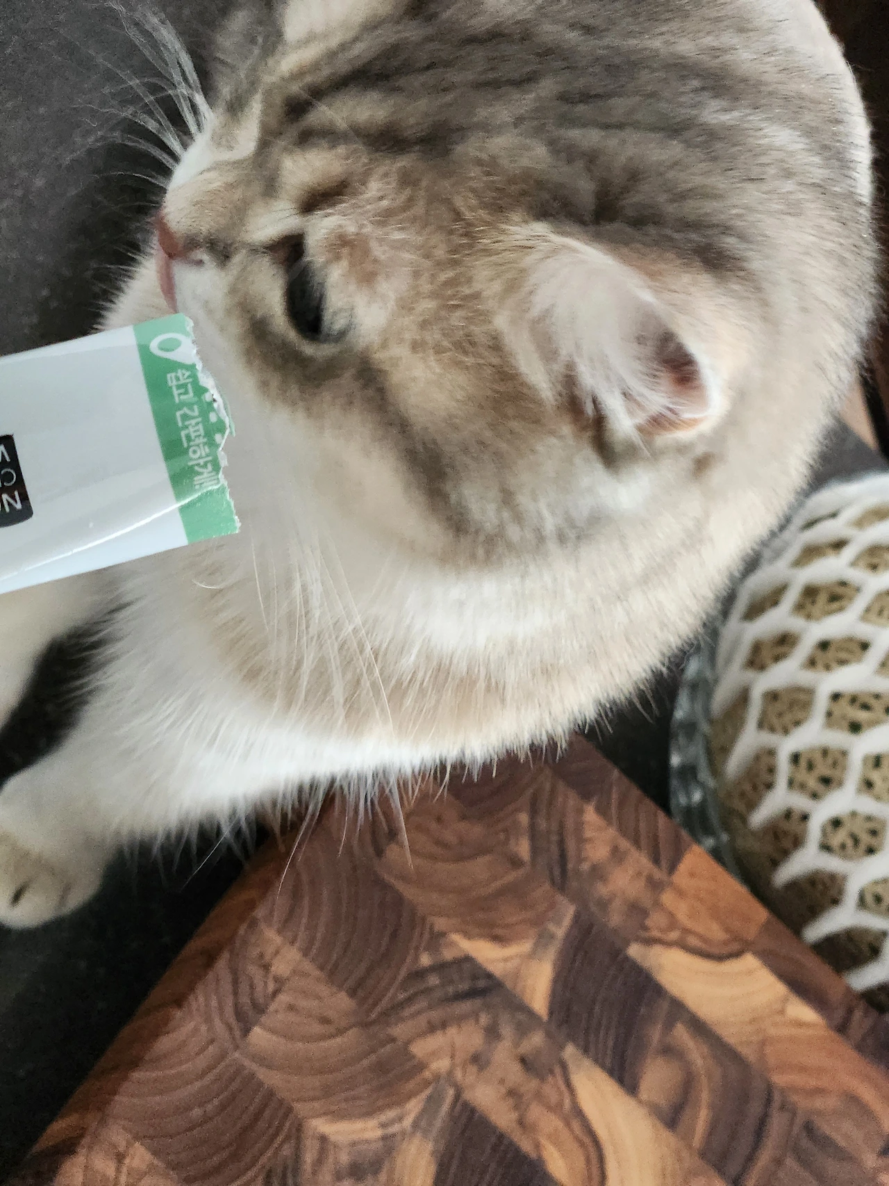 뒤늦게 이번 결막염약복용 작전의 부작용이 하나 발견되었는데, 그것은 바로 루루가 스틱형 가루 제품을 보기만 해도 흥분한다는 것이다. 맛난 밥을 잘 먹여주는 (루루피셜)예쁜 집사를 응시하다 믹스커피를 한 잔 타 먹으려 믹스 스틱을 부시럭, 꺼내면 루루가 골골송을 부르며 다가온다. 아마도 하루 한 포의 스틱형 츄르를 즐기고 있는 루루가 모든 스틱형 제품들을 츄르로 믿고 싶은 것이겠지?