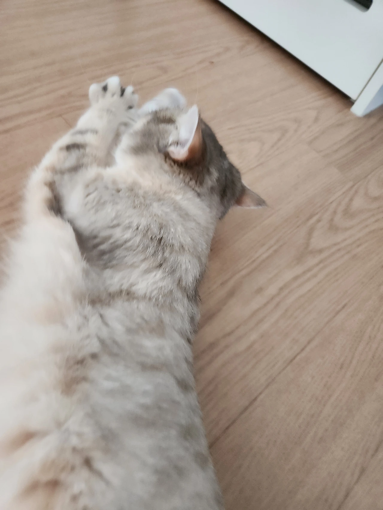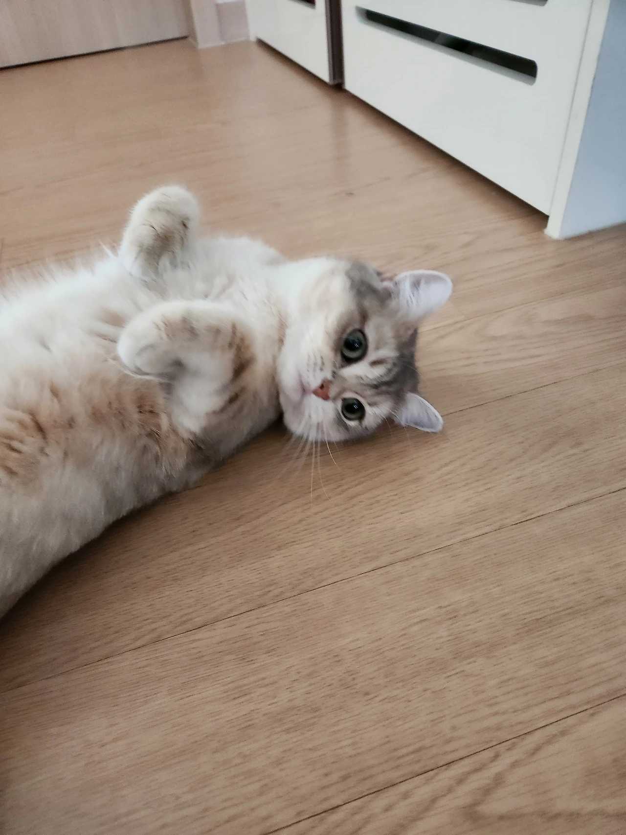 엄마집사의 당일치기 서울상경으로 혼자 오롯한 12시간 정도의 시간을 보낸 루루는 혼자만의 시간이 썩 즐겁지는 않았던 기색이다. 어린 집사들의 방학 기간으로 복닥 복닥 했던 그간의 날들에 갑작스럽게 찾아왔던 고요한 시간이 더 낯설고 무료했을 터. 집사의 귀가를 어찌나 반기는지 몇 걸음 못 걷고 발라당, 발라당 여기도 만져달라 죠기도 만져달라 이리 구르고 저리 구른다.