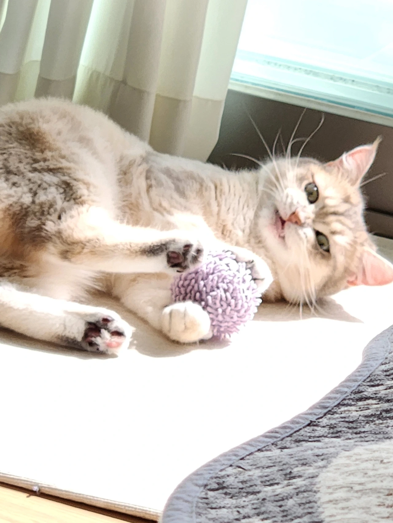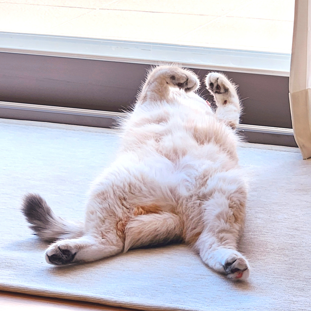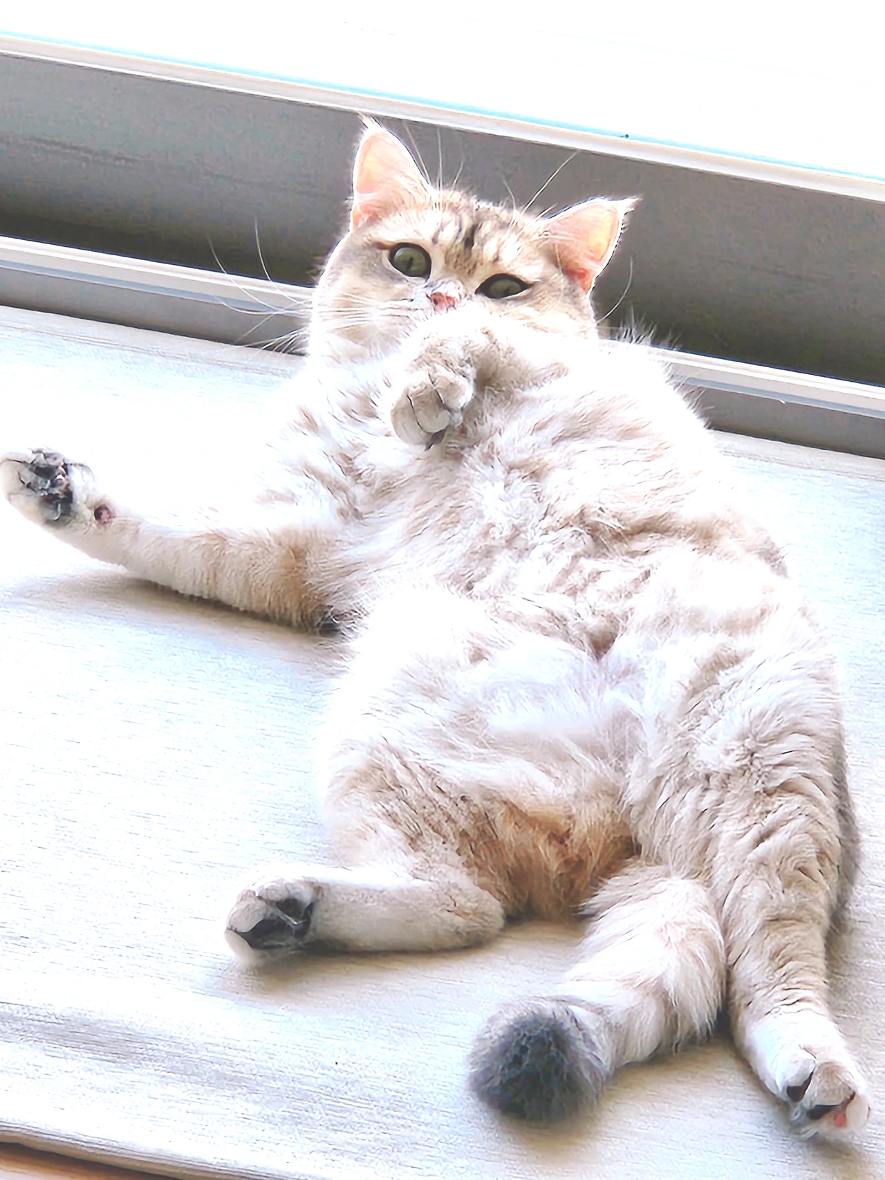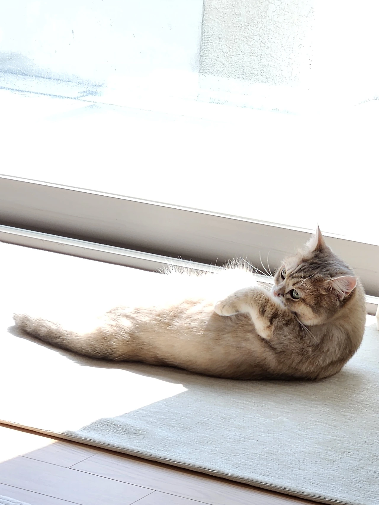따스한 볕이 드리운 창가에 자리를 잡고 여름내 눅눅했던 몸과 마음을 꺼내어 구석구석 말리는 루루. 루루는 가을볕 아래 햇살샤워 중이다.