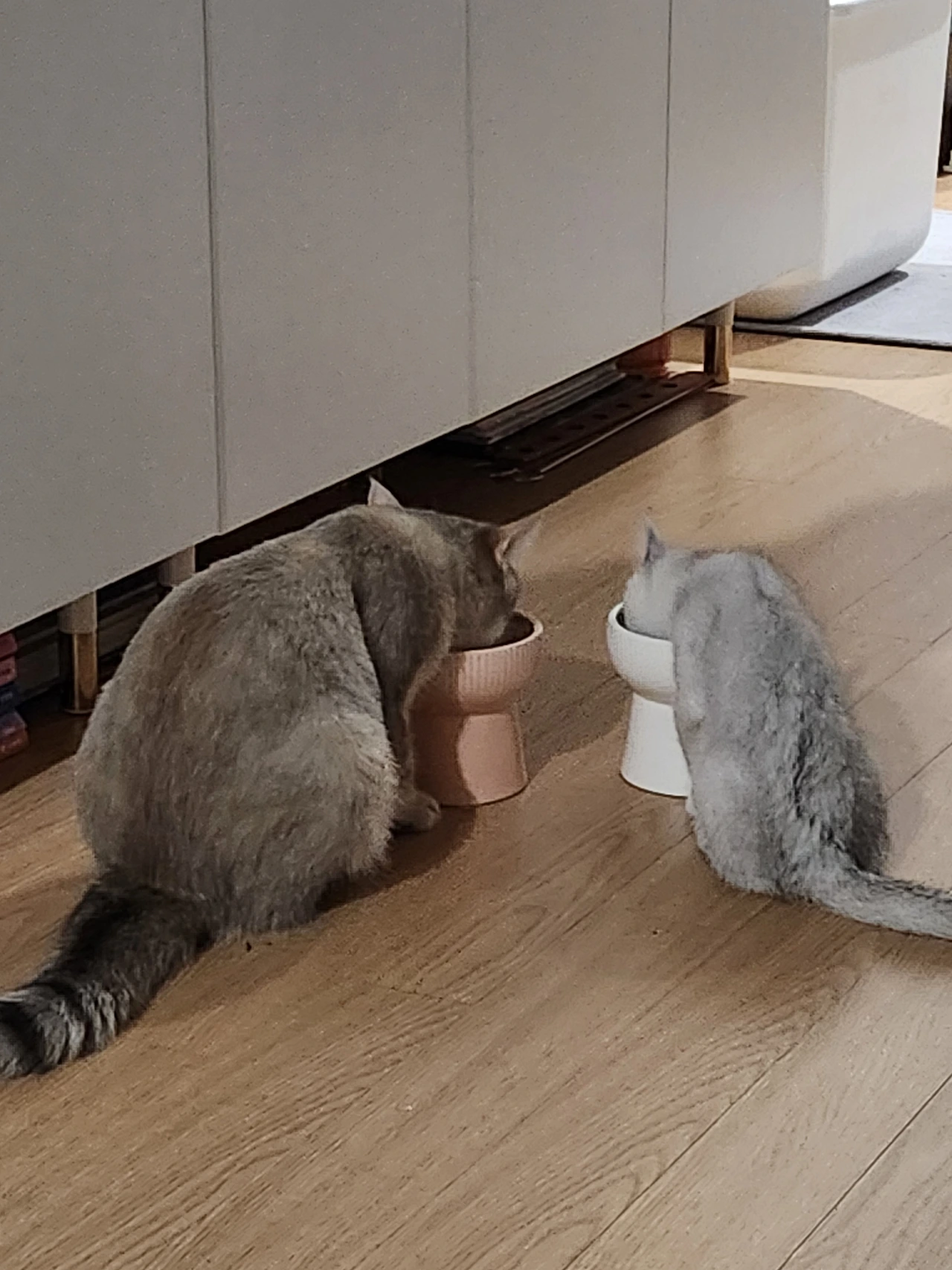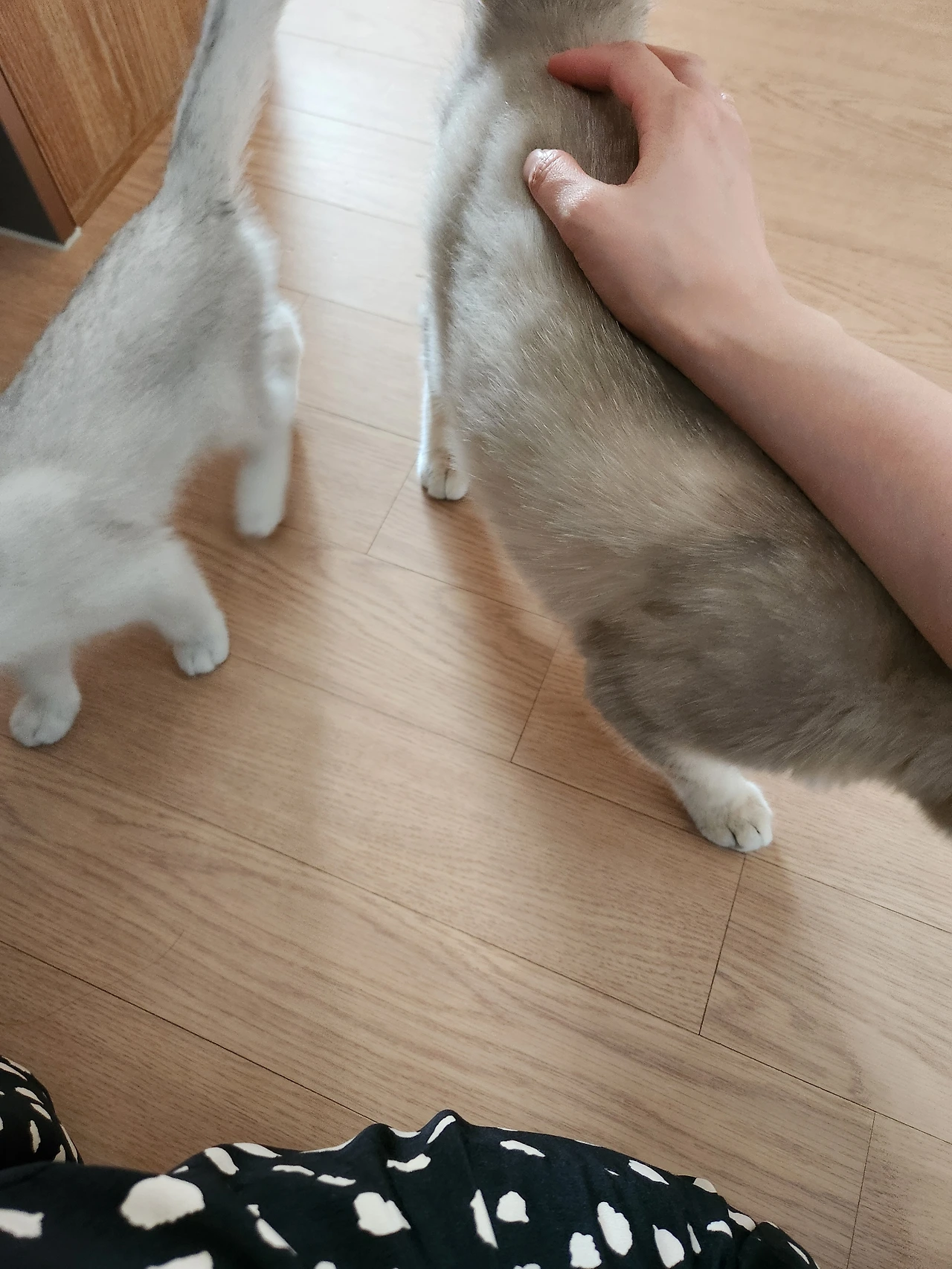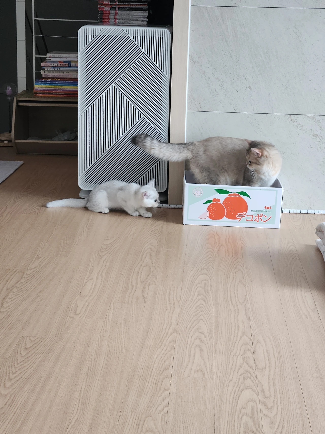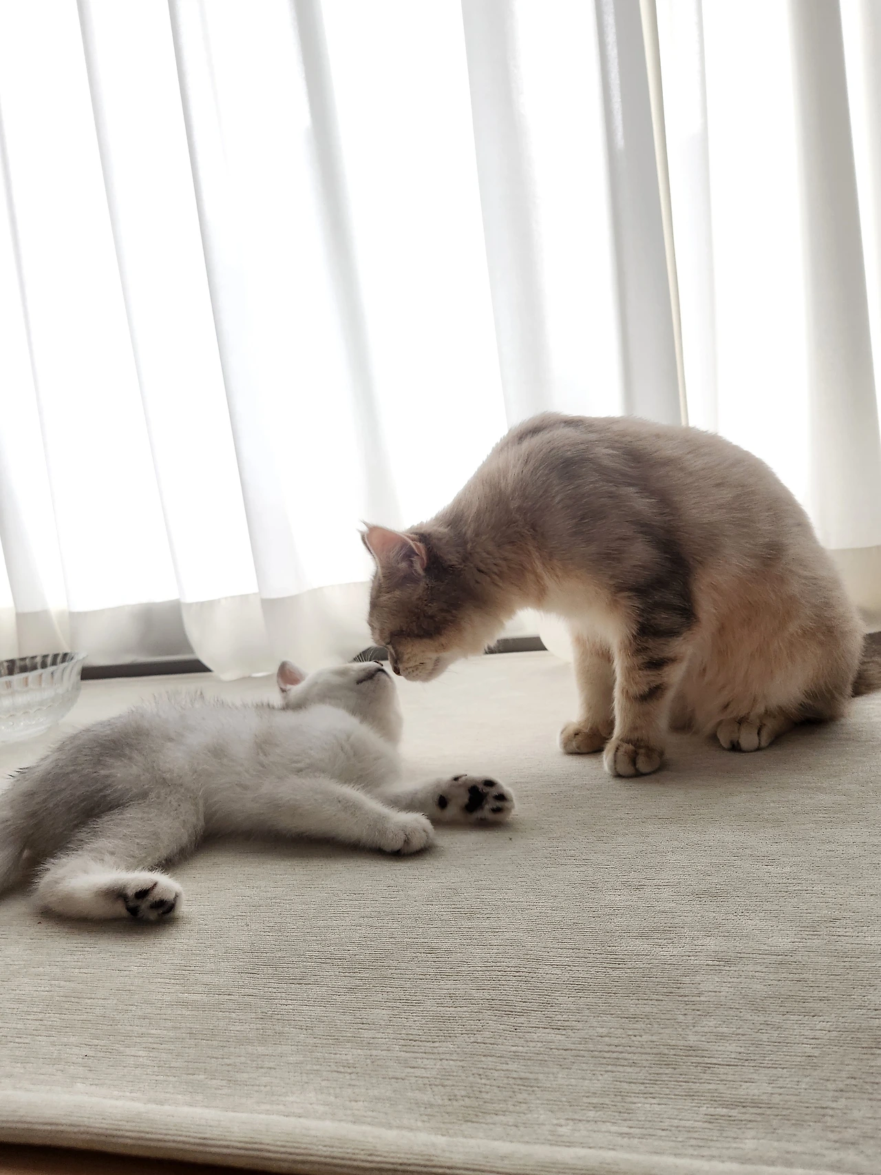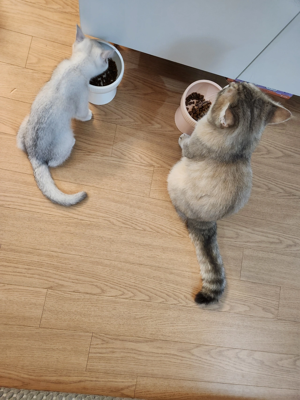 집안 탐험도 같이, 식사도 같이, 낮잠도 같이. 같이 하는 즐거움을 알았는지, 부쩍 따르고 챙기는 둘을 보니 집사의 마음도 즐겁다.