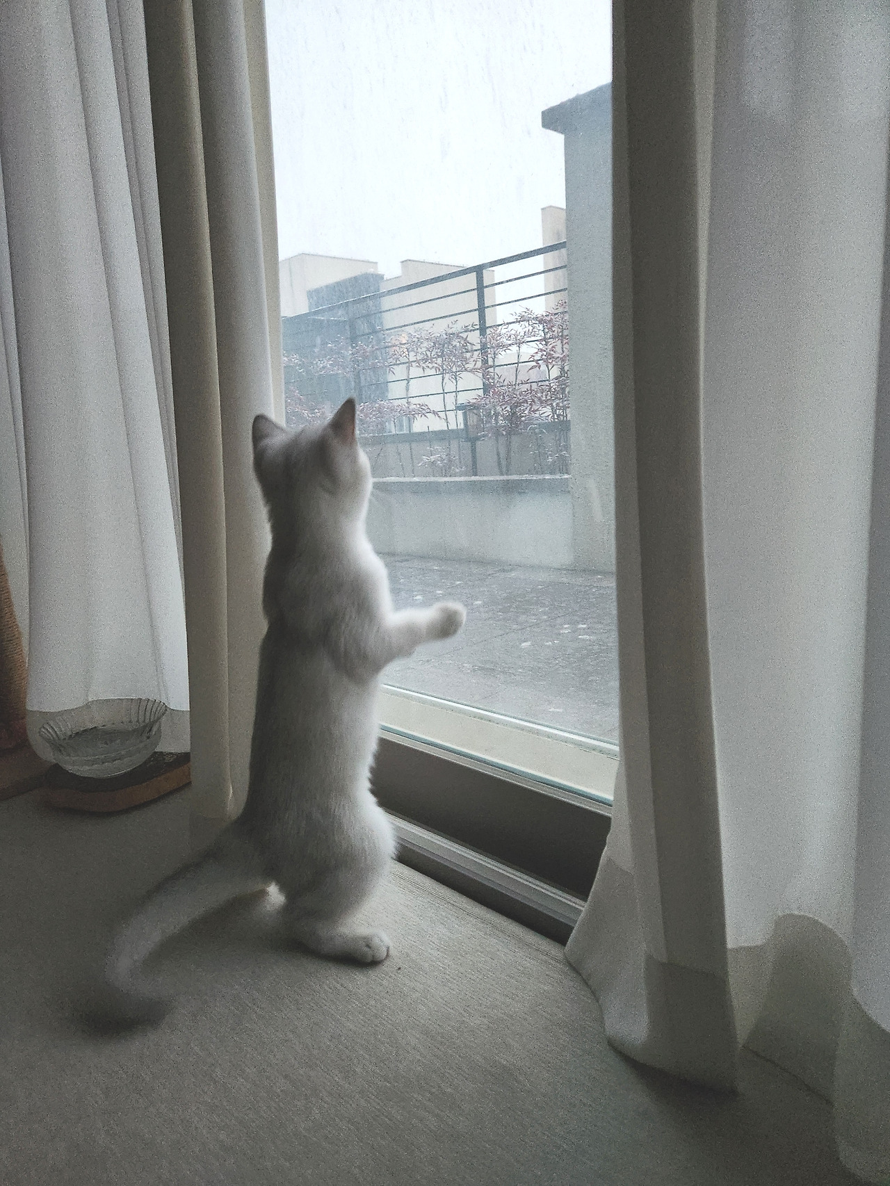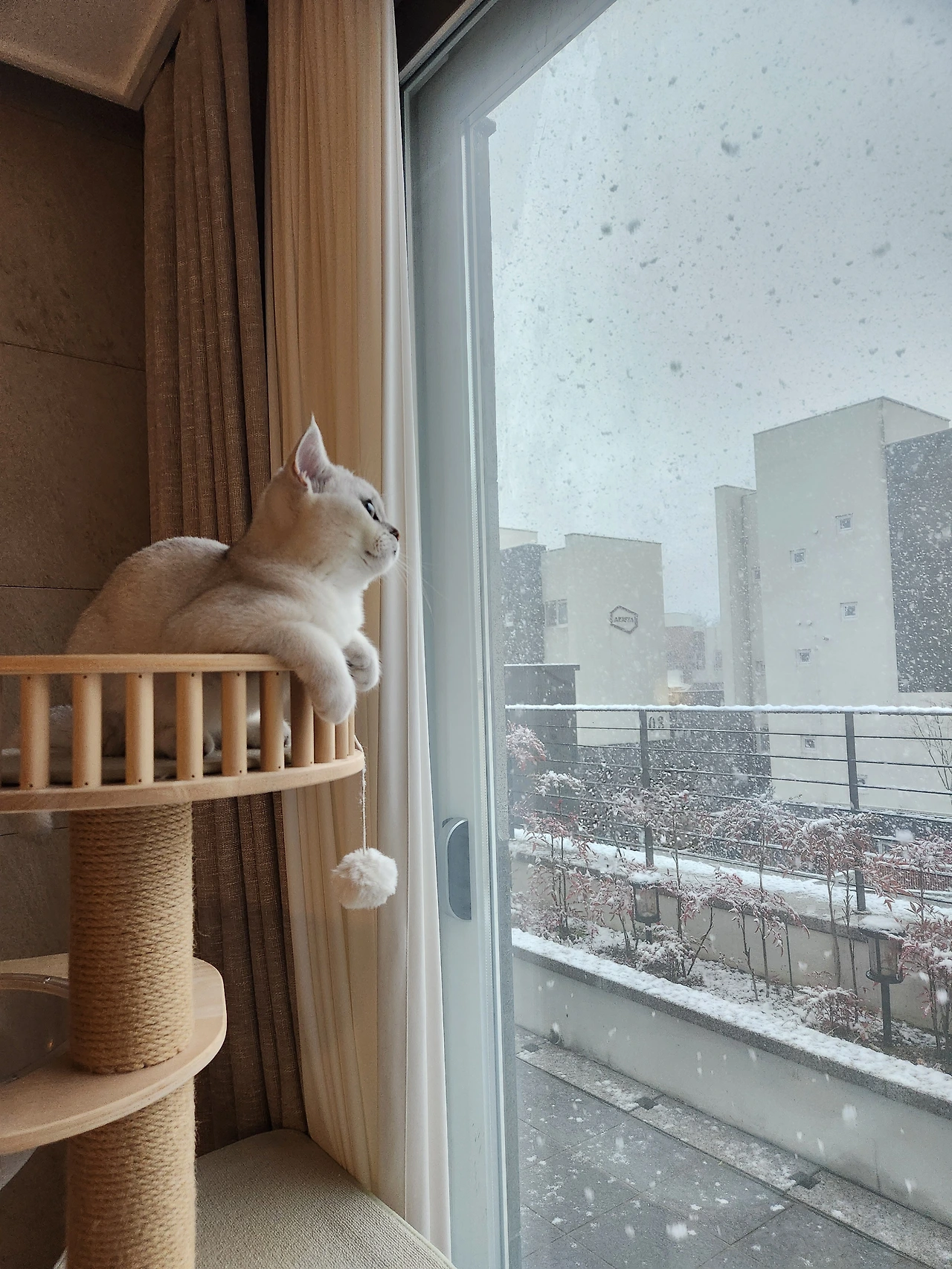 묘생 첫눈을 마주한 작은 털인간은 흩날리는 꽃송이들을 앞에 두고 사냥본능으로 흥분한 까닭인지 애가 타는 마음인지 통통 거리며 안절부절못하고 있었다. 그런 잔망루미를 보며 집사는 조용히 마음으로 반가운 인사를 건넸다. 올해의 첫눈에게 말이다. '안녕, 또 왔네~ 반가워.'