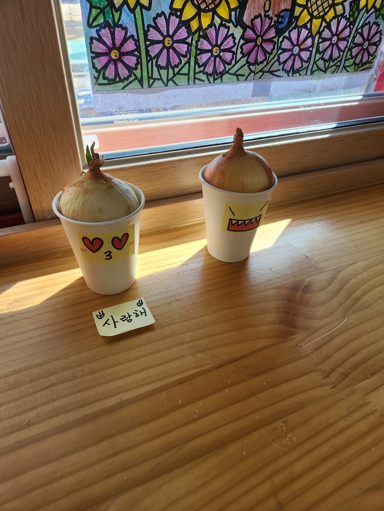 여러 해, 아이들과 했던 양파 실험. 할 때마다 화가나양파가 반란을 일으킬까, 선생님도 가슴이 쫄리는 건 모두에게 비밀이다. 등교해서, 쉬는 시간, 점심시간, 시간이 날 때마다 사랑해양파에게 가서 세레나데를 불러주고 다정하게 사랑의 언어를 전달하고 있는 아이들을 보고 있노라면 엄마미소가 자동 발사된다. (오구오구 내새끼들)