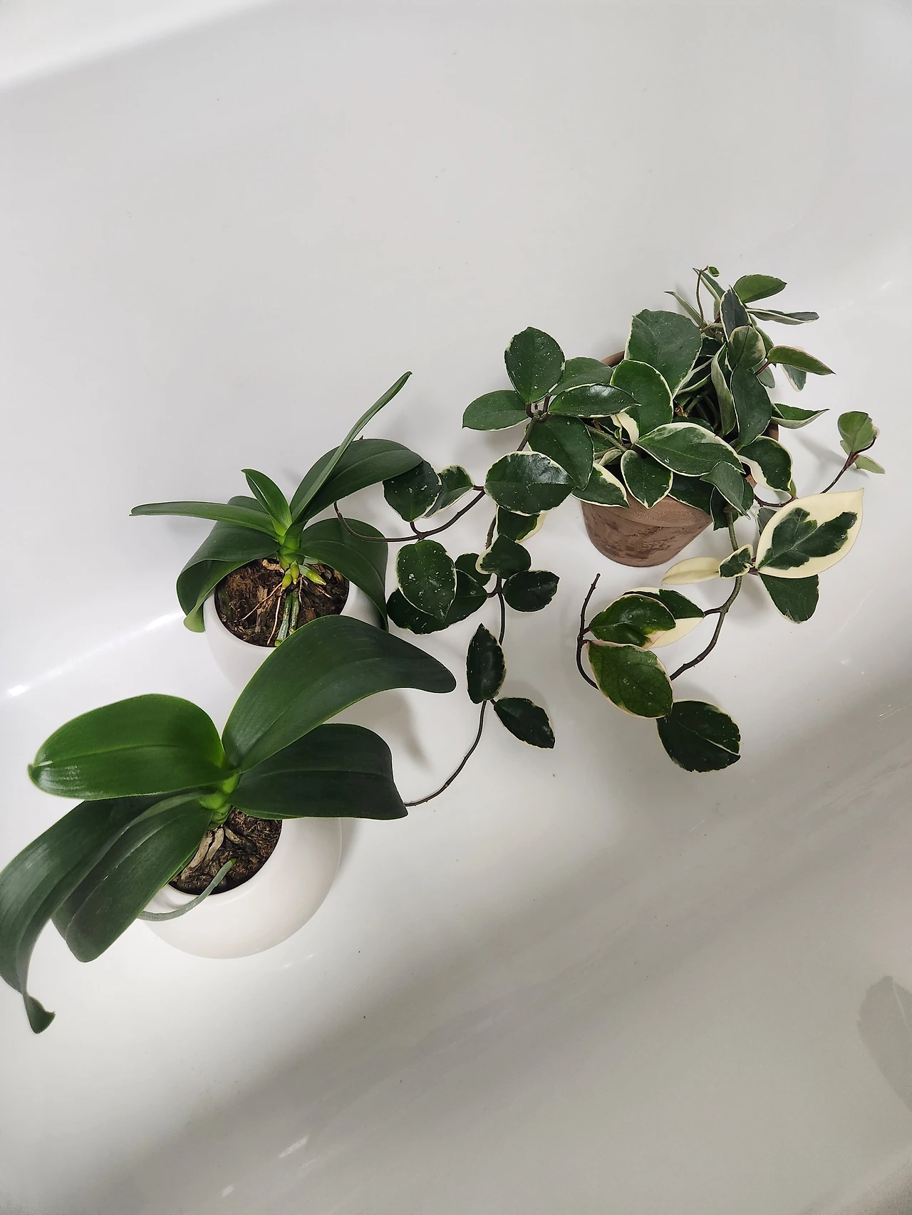 세탁실의 거베라와 장미, 화장실에 자리 잡은 호접란과 호야, 바로크벤자민. 영구퇴거당한 식물들은 다른 곳에서도 잘 자라고 있으니 다행이다.