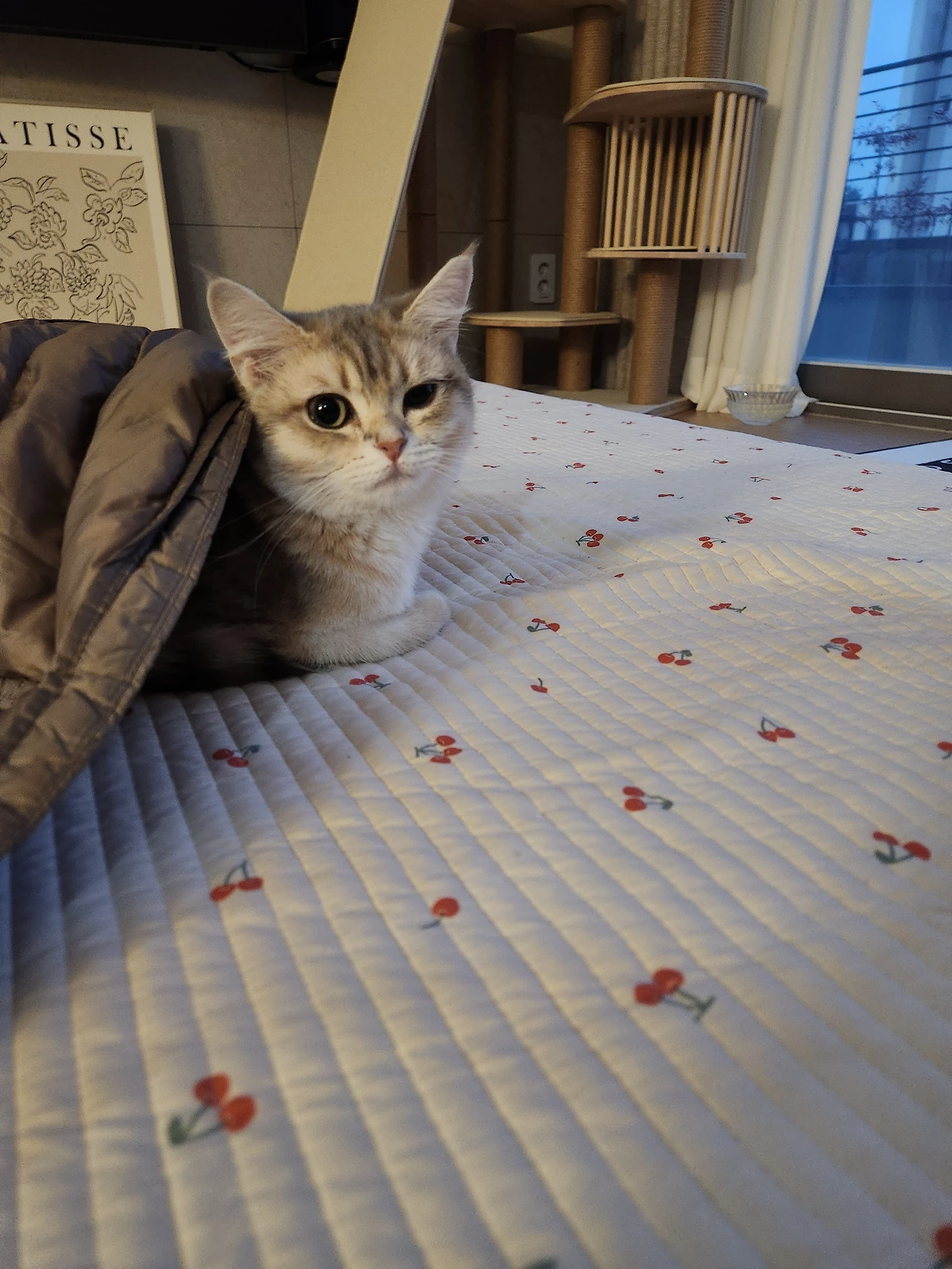 꽃 좋아하는 냥이의 최후는 좌측 안구의 알레르기성 결막염으로 이어져 고난주간에 있다. 왼쪽 눈을 뜨기 힘겨워하는 내고양이를 보는 집사의 마음은 미안함과 안쓰러움으로 찢어진다. 영하의 날씨에도 창문을 열어젖혀 찬기운이 집을 온통 관통하도록 환기하기를 시작으로 구석구석 쓸고 닦는다. 최대한 스트레스를 받지 않을 환경을 만들고, 안약도 잊지 않고 넣어주고 있으며, 면역력 증강을 위한 보양식도 준비, 살뜰히 내고양이를 살핀다.
