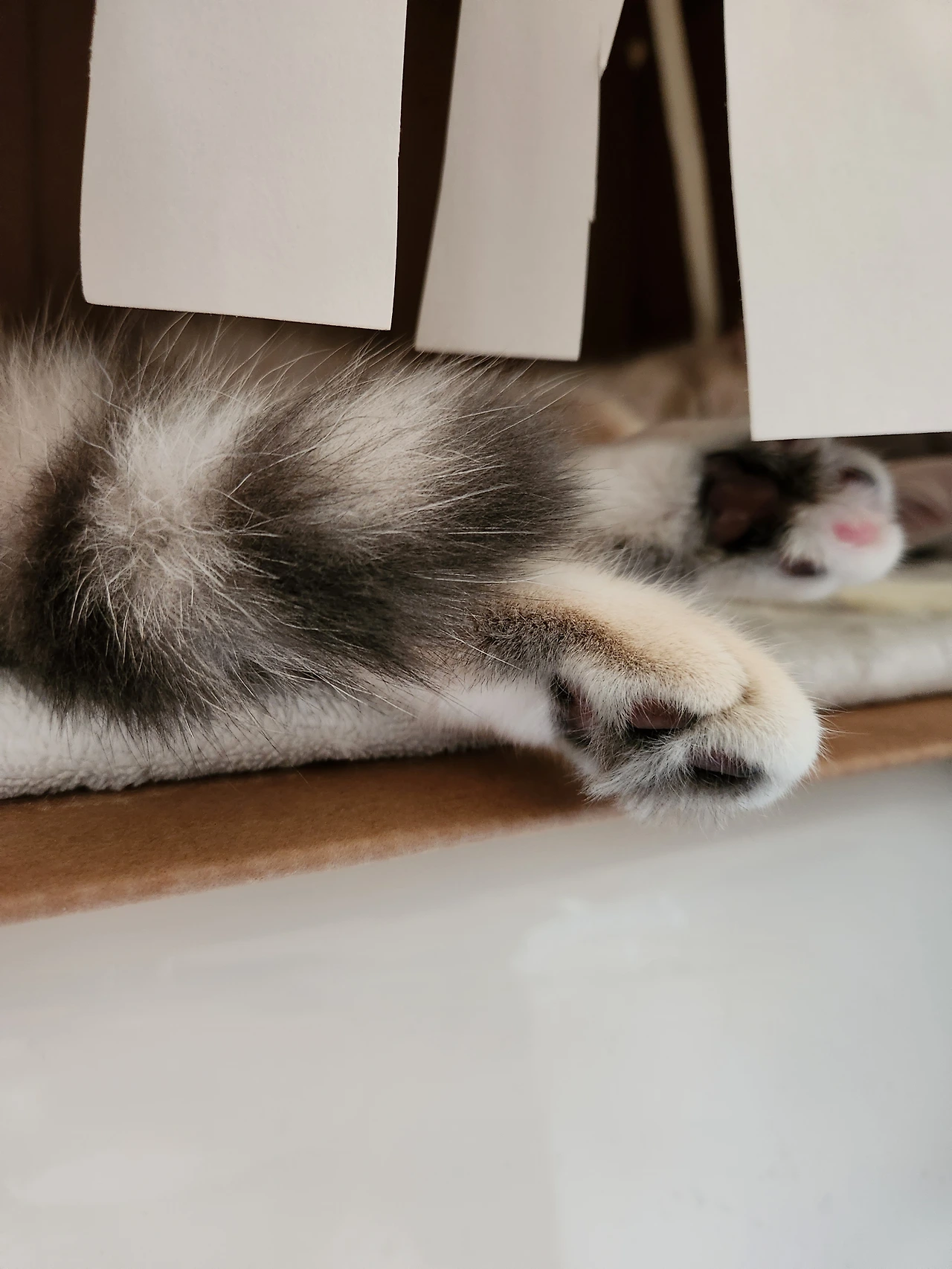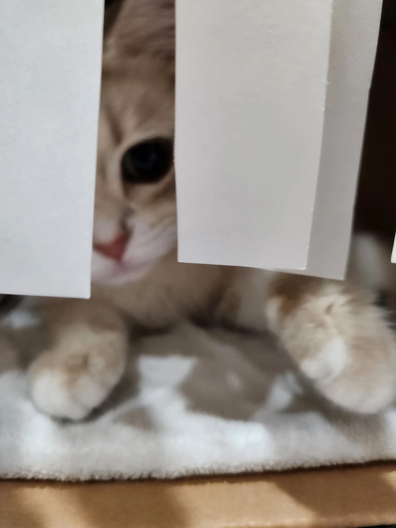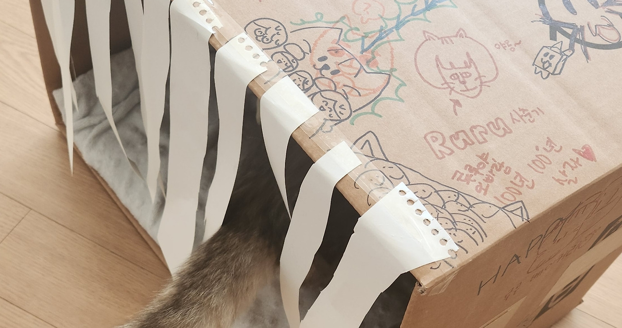 아이들이 만들어준 집은 루루의 최애 거처가 되어 있다. 낮잠을 좋아하는 루루는 창가 캣타워에서 광합성을 즐기며 단잠을 즐기는데, 요즘은 부쩍 이 집에서 보내는 시간이 많다. 아이들의 넘치도록 충만한 사랑이 가득 담긴, 아늑한 박스집이 꽤나 마음에 드는 모양. 아무리 불러도 대답이 없다 싶으면 어김없이 여기에서 루루를 발견할 수 있다. 사랑에 취했는지 잠에 취했는지 루루는 거나하게 취해 젤리를 간지럽혀도 깰 생각을 않는다. 루루와 아이들의 마음이 귀여워 한참을 응시하고 있노라면 빼꼼 얼굴을 내미는 녀석, 크헉 - 집사는 항상 심쿵사를 조심해야 한다. 몹시도 유익하지만 유해할 수 있는 치명적인 매력의 고양이이기에.