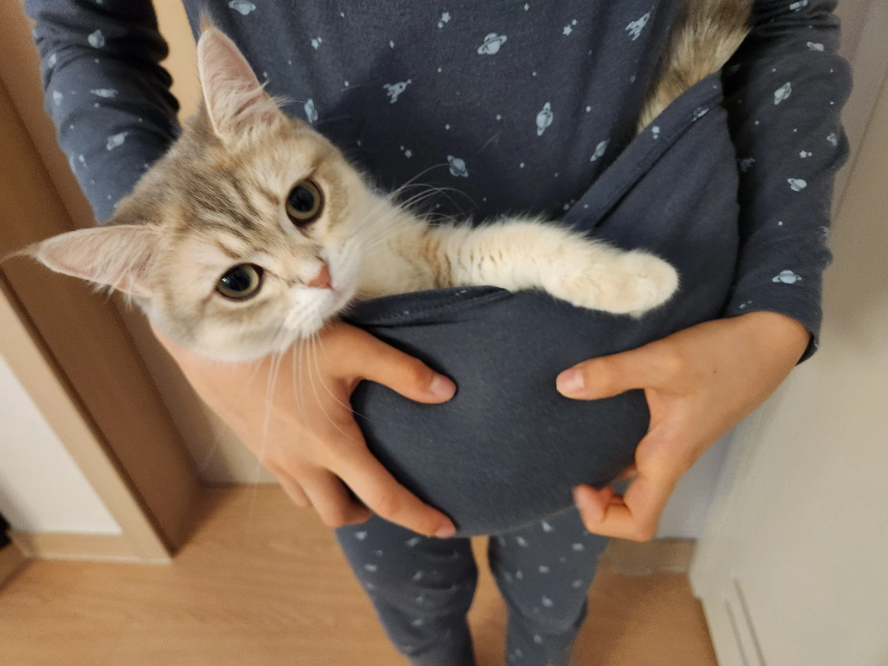 별님이는 오늘도 제 내복상의를 해먹 삼아 루루를 배에 넣고 다닌다. 루루도 오빠의 해먹 내복이 편안한지 수염까지 늘어뜨리니, “어화둥둥 우리 루루~ ” 아들은 노래까지 불러주며 리듬감 있게 사알사알 해먹을 흔들어 준다.