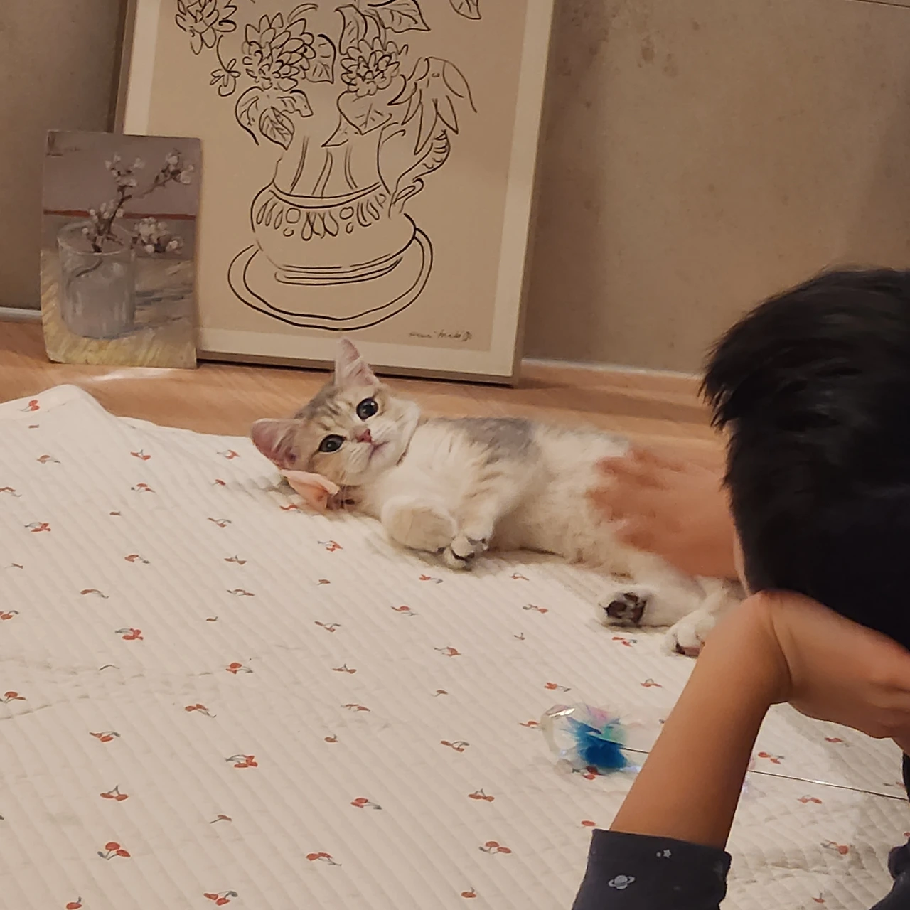 자기들 갓난 아기일 적에 썼던 담요를 가져와 폭신하게 깔아주고는 예쁘게 박스를 꾸며준답시고 사브작사브작, 혼신의 힘을 다해 작품을 만든다. 여러 버젼의 루루 모습 그림, 그리고 집사의 바람과 사랑 고백의 낙서들. 루루를 향한 사랑이 여기저기 난무하다. 커튼을 좋아하는 루루를 위해 낮에 낮잠도 잘 자라고 커튼을 만들어 준다는데... 부디 엄마는 부피까지 큰 예쓰(예쁜 쓰레기) 만은 되지 않기를 간절히 기도한다. 그런데 말입니다. ‘루루야 오빠랑 100년 살자’라니. 사실 엄마집사는 요즘 별님이가 오빠 소리를 달고 사는 것이 웃기기도 하고 귀엽기도 하면서도 당황스럽기도 하다.