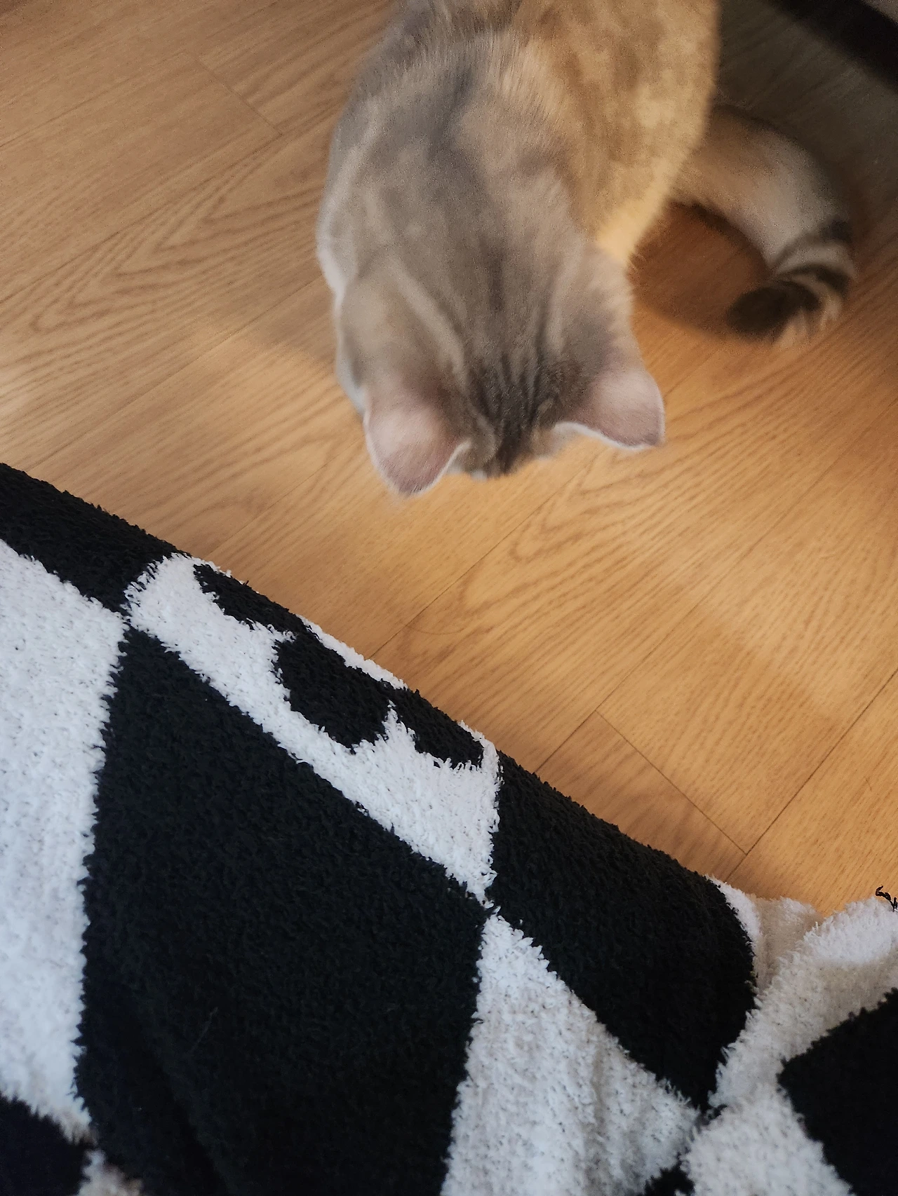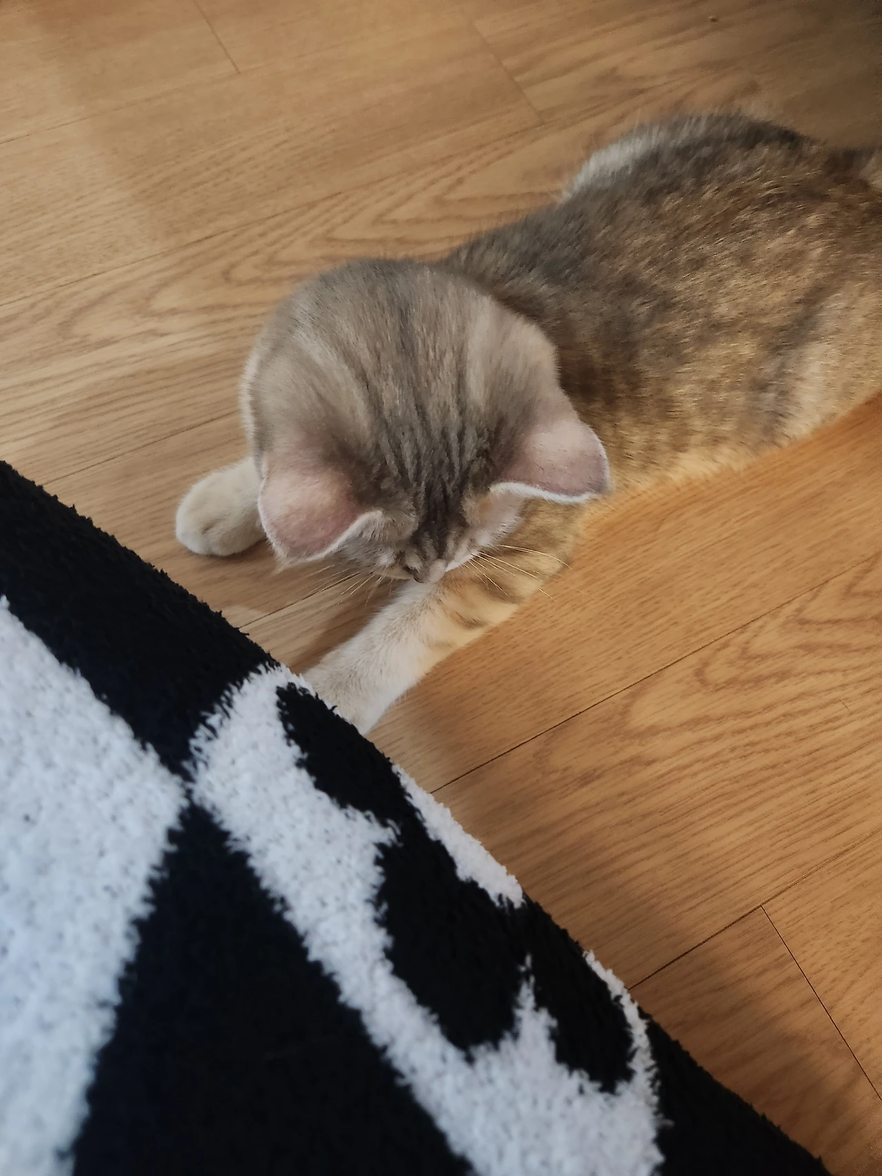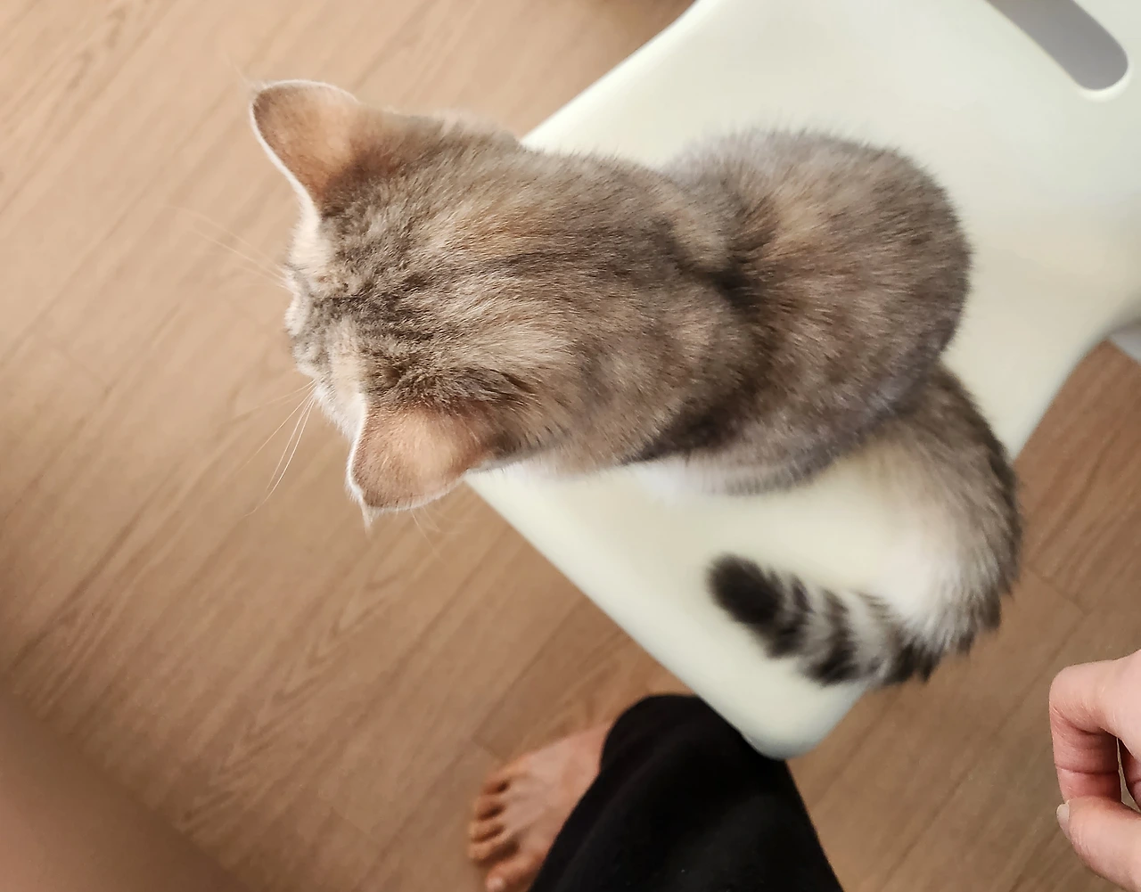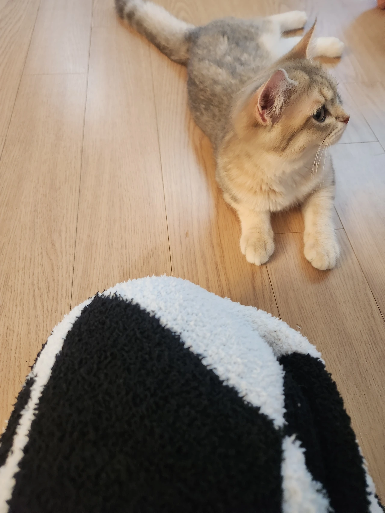 반면 비열이 높은 내고양이는 거의 표정의 변화가 없이 뜻밖의 행운이나 시련에도 쉽게 들떠 일을 그르치는 일이 없다. 이를 테면, 골골송에 홀린 집사의 뜻밖의 까까선물이나, 발톱 깎기나 냥빨, 주사 맞기 같은 이벤트에도 차분하게 항상성을 유지한다. 입을 앙 다물고 꼬리를 야무지게 말고, 너무 뜨겁지도 차갑지도 않은 따땃한 적당한 온도로 적당한 거리를 두는 내고양이. 어찌 이렇게 점잖을 수가...