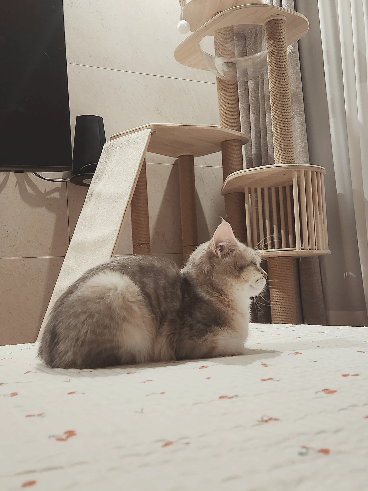 루루는 관찰 모드로 집사와 세상을 구경하는 많은 시간을 식빵 굽는 자세로 보낸다. 창가, 캣타워, 쇼파, 테이블, 매트, 장식장, 계단, 자신의 몸이 닿는 집 안의 모든 공간을 베이커리로 만들어 버리는 그녀의 재주 덕에 집사들은 요즘 웃는 일이 많아졌다.