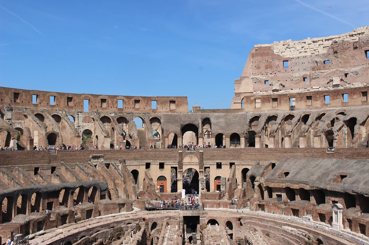 콜로세움은 로마의 경기장 또는 원형 극장으로 쓰이던 곳이다. 영화 <글래디에이터>처럼 검투사들이 검투를 하던 곳이기도 하다. 가운데의 공연장 밑에는 지하 공간도 있어서 현재는 그 모습을 여실히 보여주고 있다.