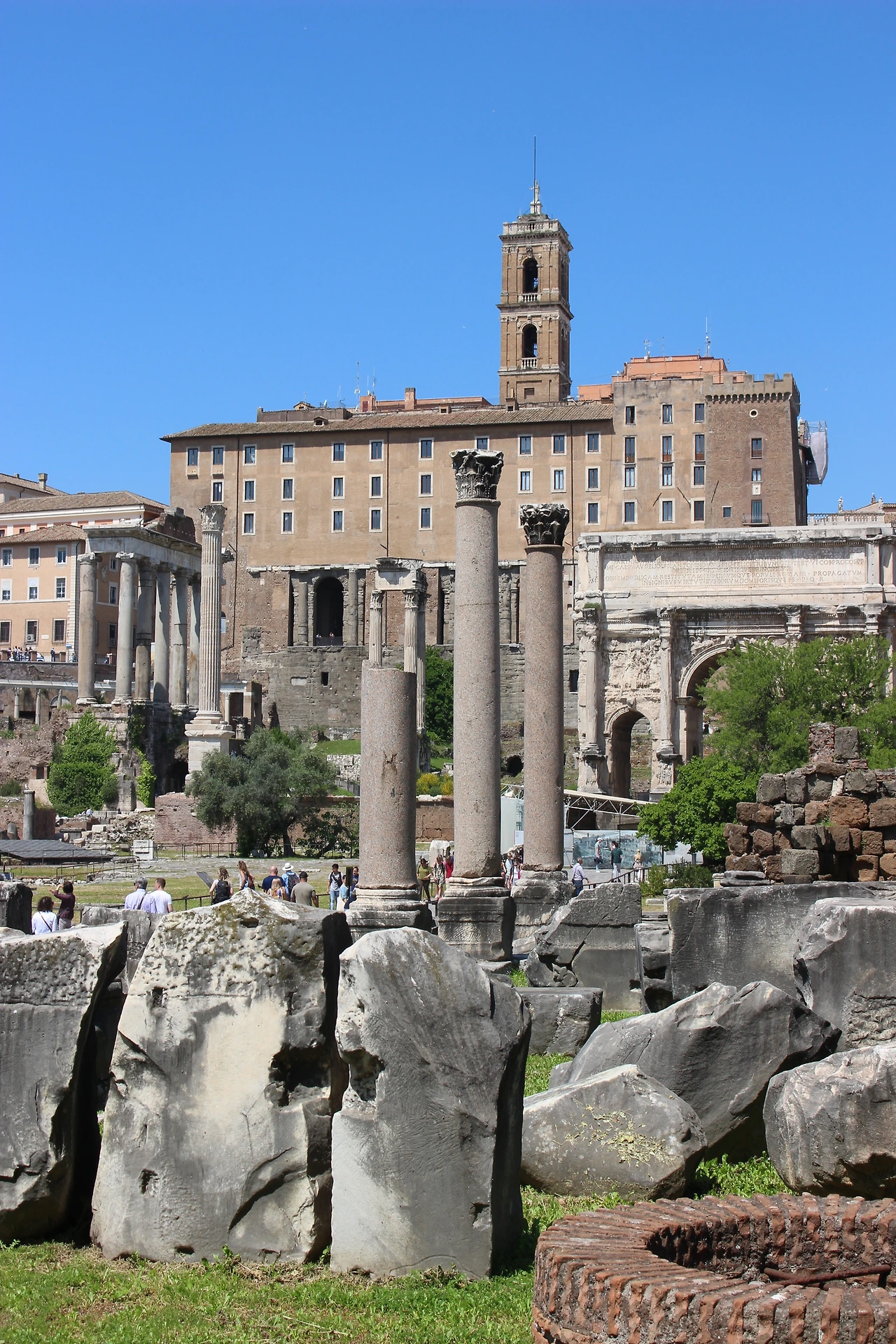 콜로세움에서 나와 야트막한 언덕을 오르면 작은 개선문이 보인다. 티투스 개선문이다. 그 옆으로 입장을 하면 바로 포로 로마노이다. 콜로세움에서 받은 티켓을 보여주면 이곳 또한 무료다. 로마인들의 생활과 정치의중심지였던 유적지이다.